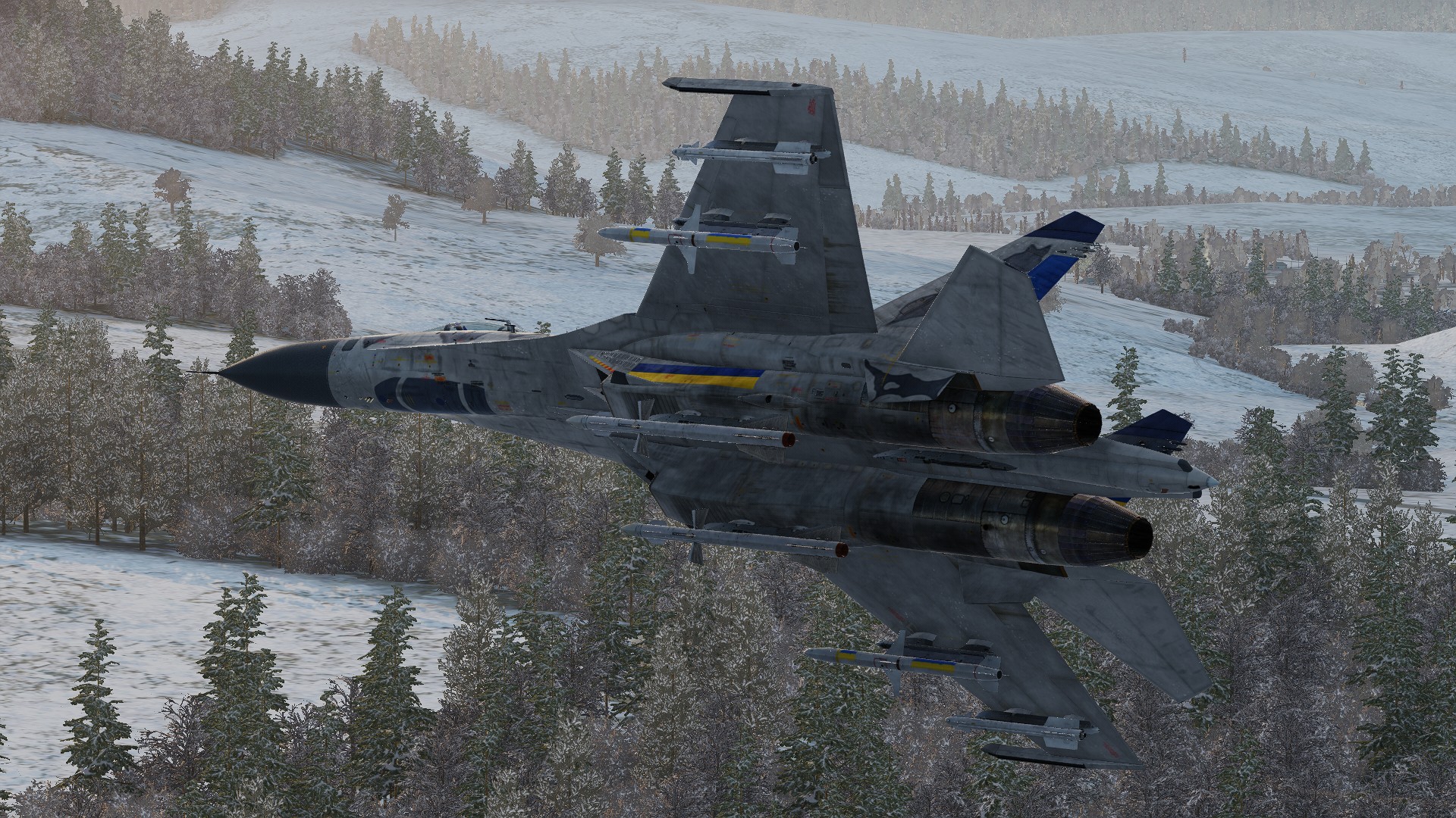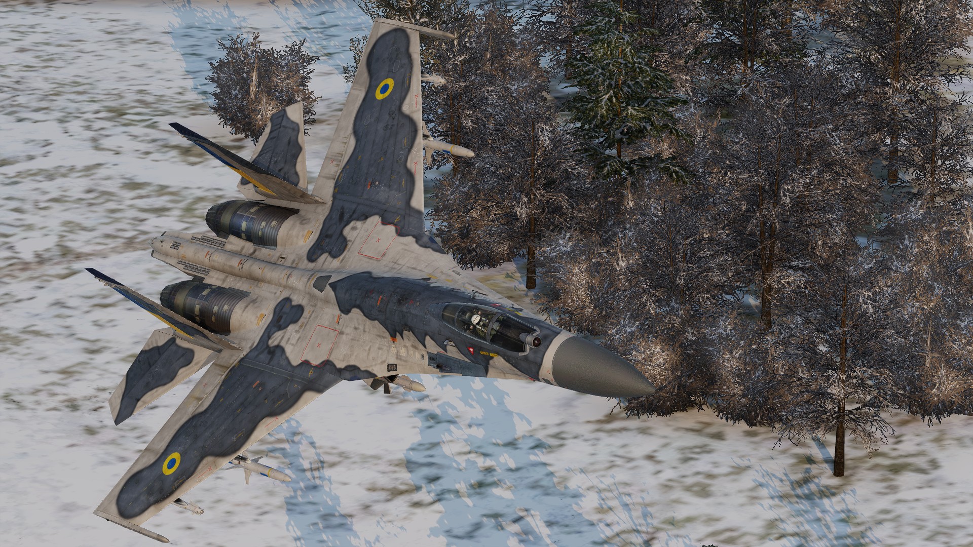 In 2023, pictures of a Ukrainian Air Force's Su-27 painted in a new camouflage similar to USAF's F-15 Paintscheme surfaced on Twitter. The amazing "@narked_fish" decided to replicate the camo, and then handed the files to me to finish and upload the livery. Link to his Userfiles section is in the description. This skin features custom AGM-88s and R-77s. Enjoy!