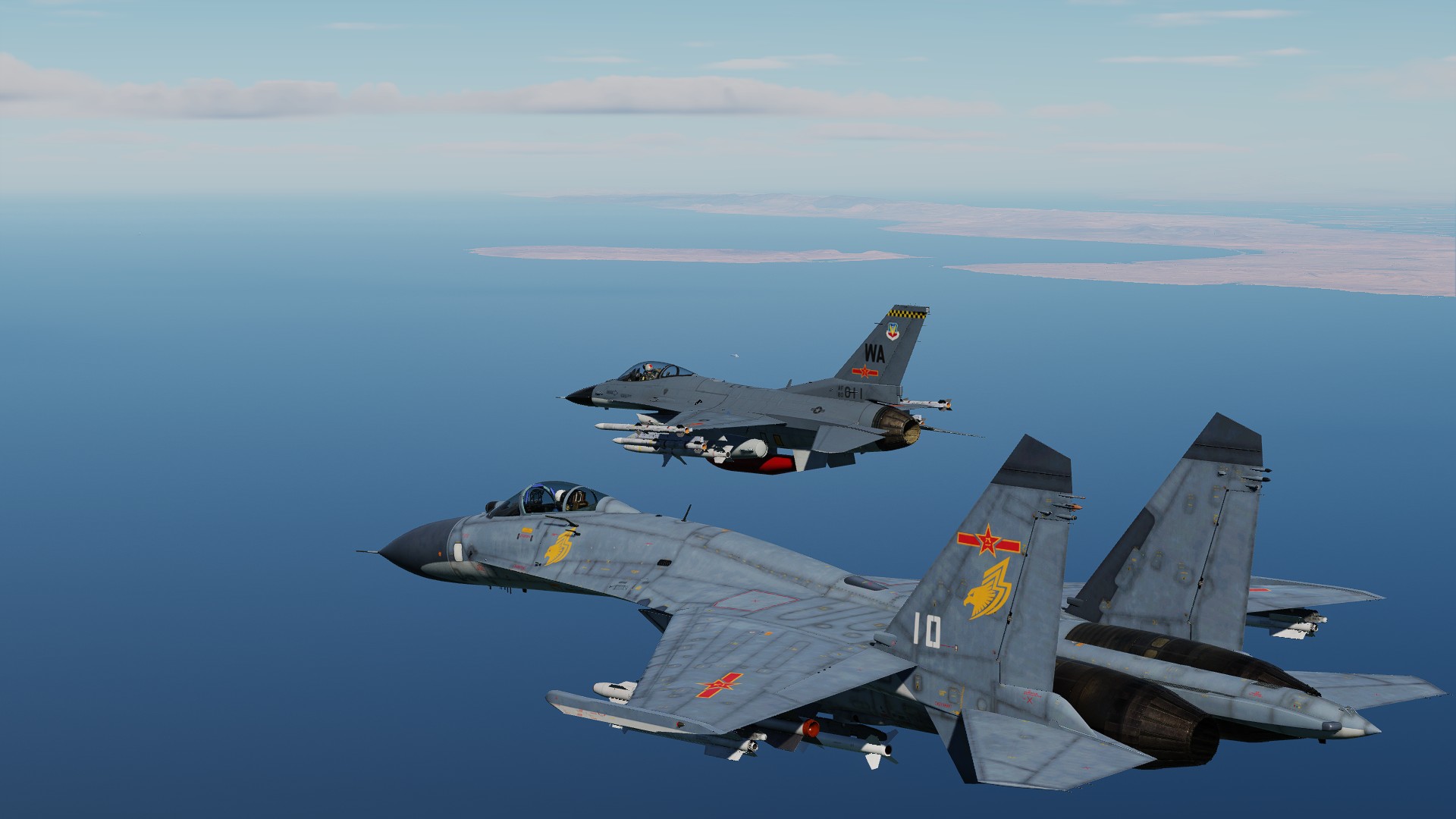 China recently unveiled the J-15T, a carrier and catapult capable flanker. On paper, this may be the single most capable Naval Fighter in service today. More importantly to me, it looks damn good. There is going to be a flight demo at Zhuhai in a few days. This Skin features custom Roughmets, custom afterburners, custom engines, a fully custom nose (which i spent too much time on), some custom paint for weapons, and more custom details which you can also find on my skins that were added to the game recently. Enjoy!
