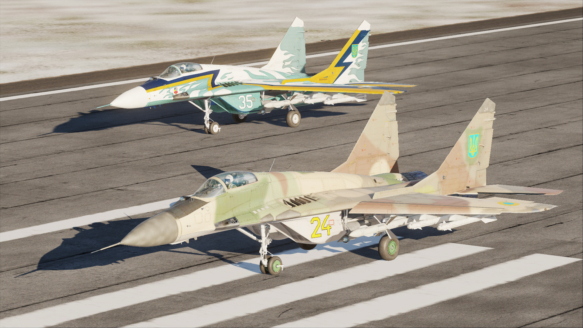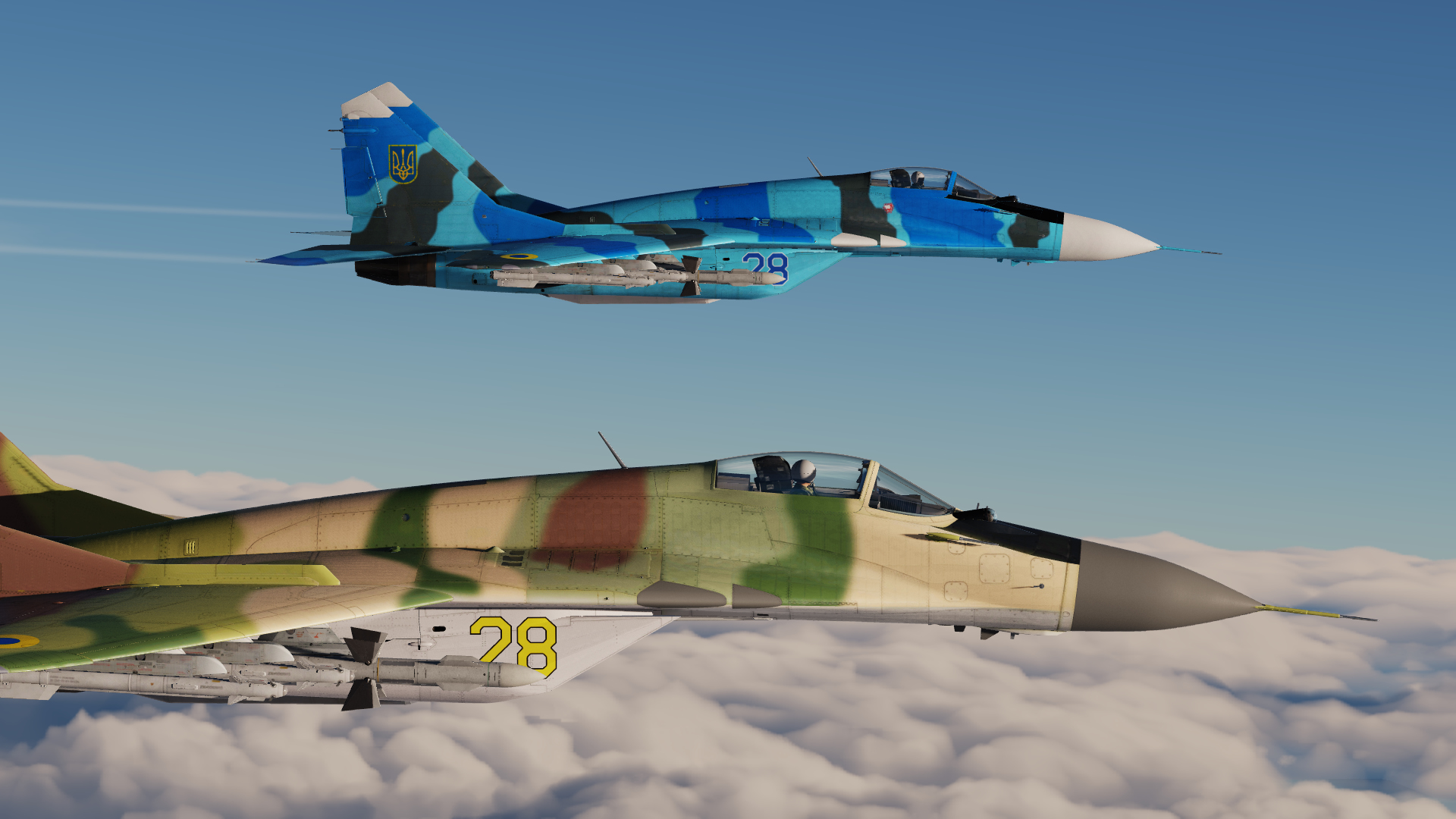 This pack of 8 liveries is a remake of all Ukrainian skins for MiG-29 that I made. I will post all these skins separately and leave a link to each in the description if you want to download only some of them. Цей пак з 8 ліврей є ремейком всіх українських скінів для МіГ-29, які я зробив. Також я викладу всі ці скіни окремо і залишу посилання на кожен з них в описі, якщо ви захочете завантажити лише деякі з них.