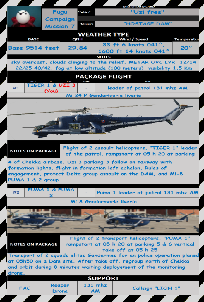 Vuelos de CAS para helicopteros y A-10 y el Harrier, tendremos dos objetivos por un lado un par de convoys y por otro una base a la que pretende aprovisionar que esta en un valle. Preparada para ser jugada en Cooperativo pero se puede hacer en solitario si se desea.