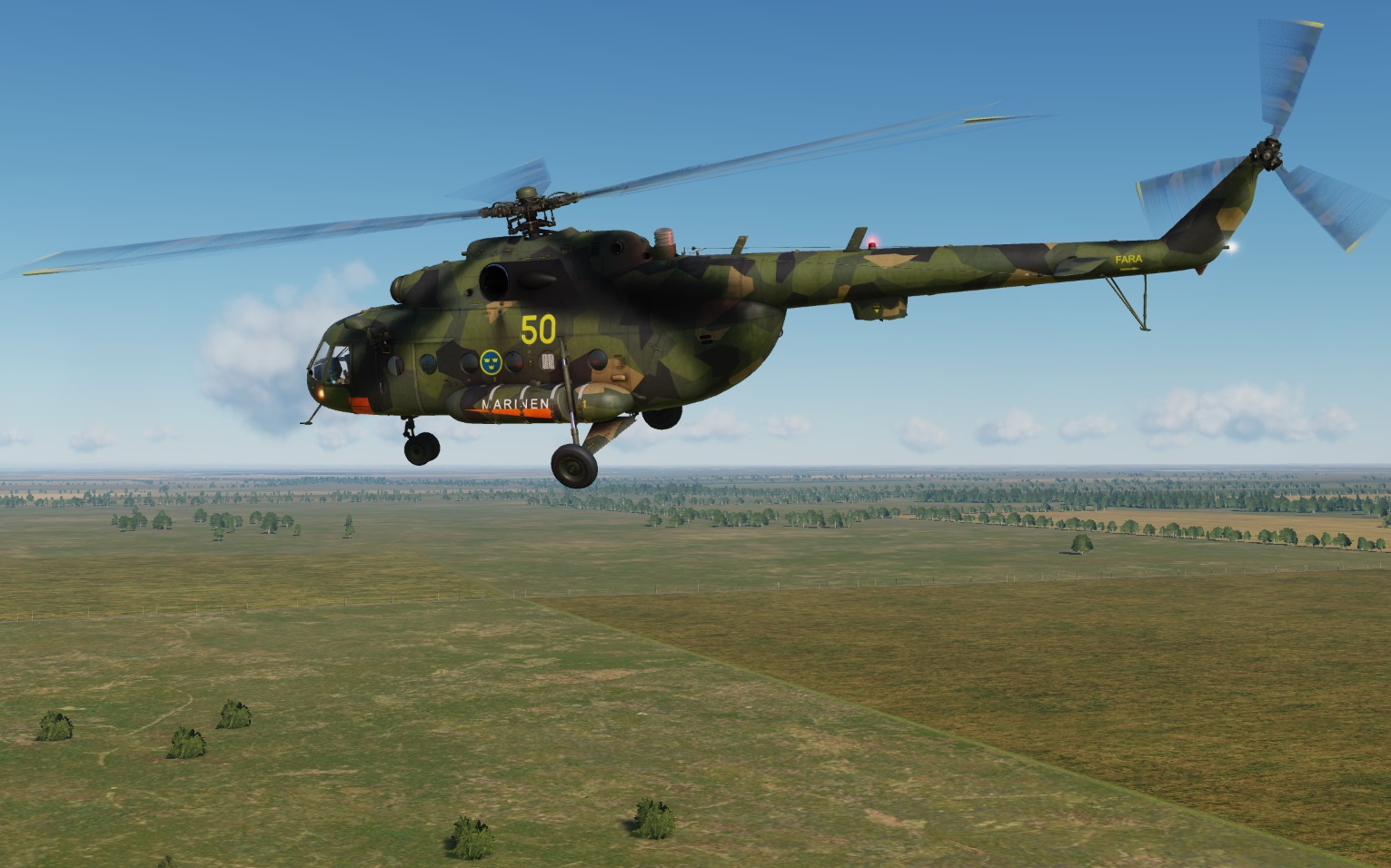 Four skins based on different HKP4 (Boeing-Vertol 107) versions that flew for the Swedish Armed forces in the FOA-camouflage.