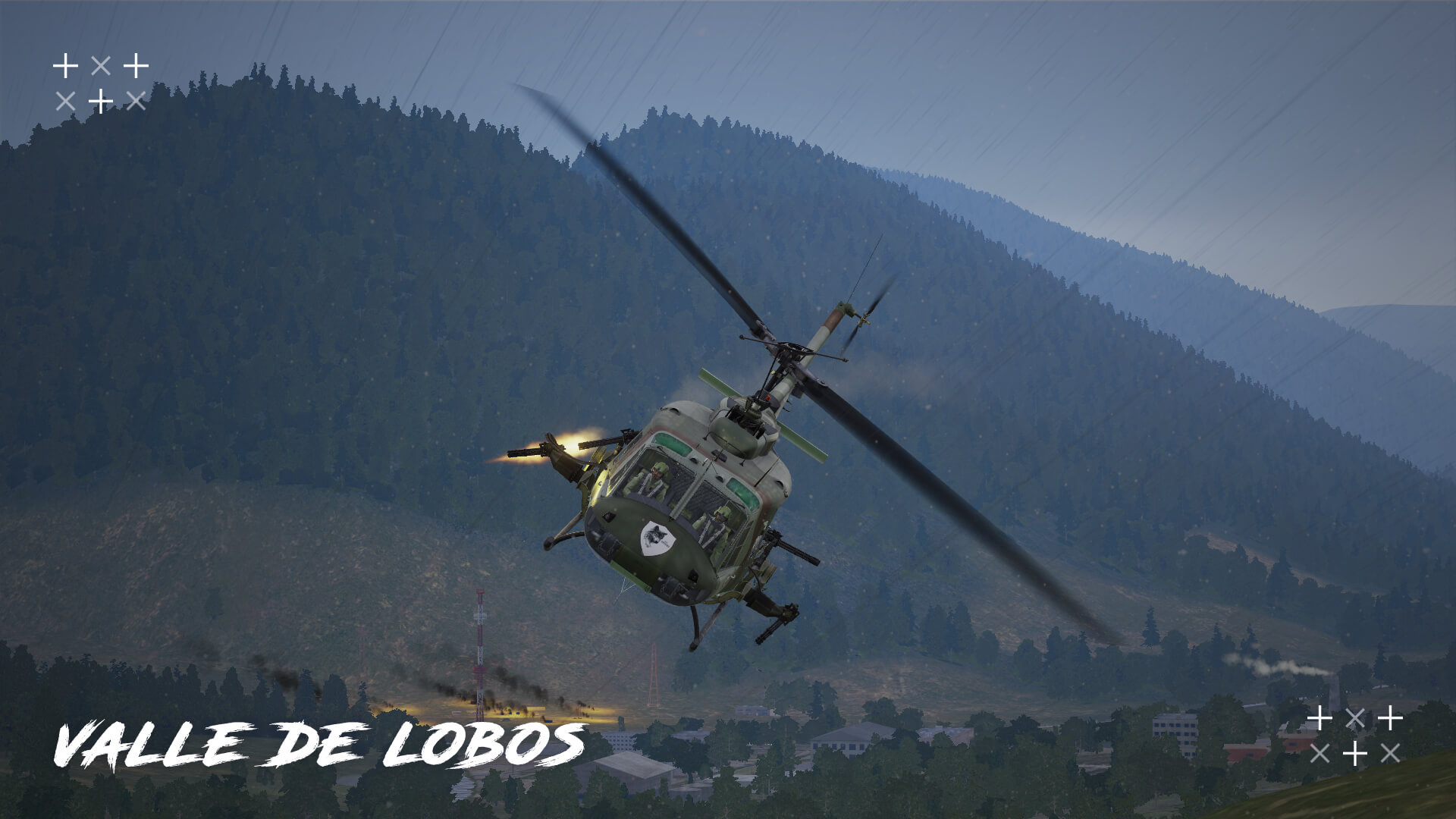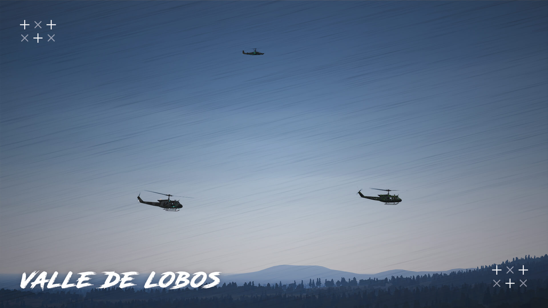 Bienvenidos a Valle de Lobos, una misión multijugador en la que un grupo de 2 KA-50 y 2 Huey deberán ingresar a lo profundo de un poblado lleno de terroristas para rescatar a un político secuestrado.