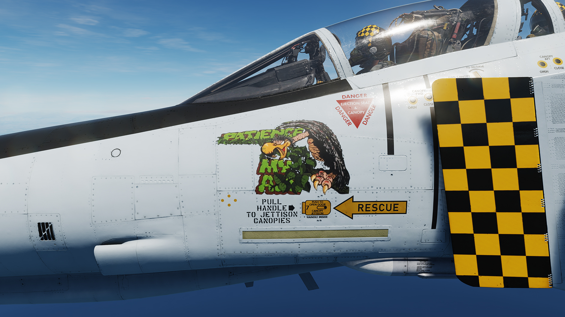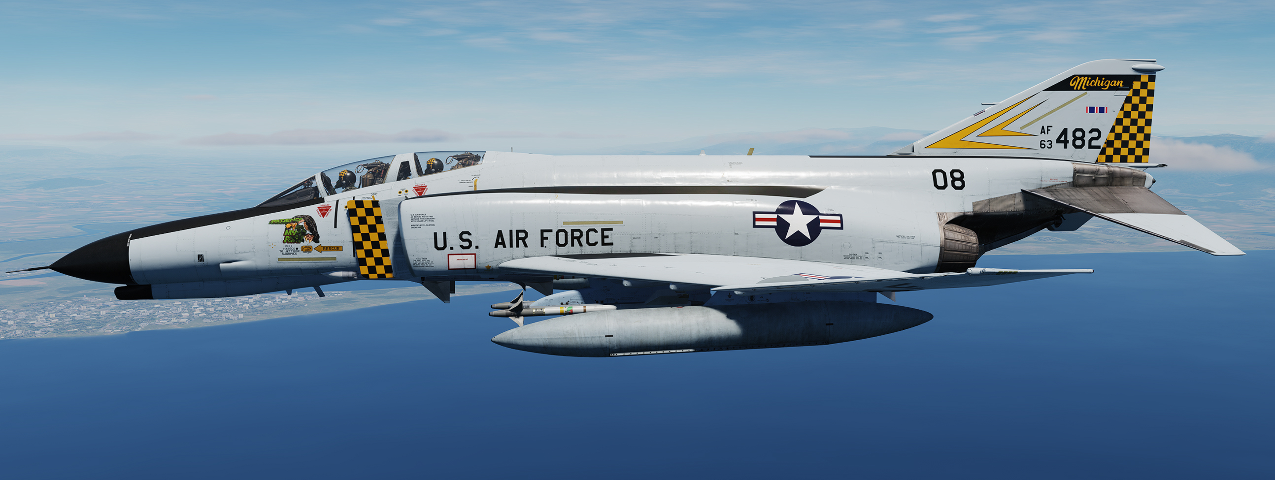 63-7482 "Patience My Ass" as it would of appeared in the early 80's while serving with Michigan Air National Guard's 171st Fighter Interceptor Squadron located at Selfridge Air Force Base. (Now Selfridge Air National Guard Base). In reality, the 171st flew F-4Cs, represented by the F-4E we have in DCS.