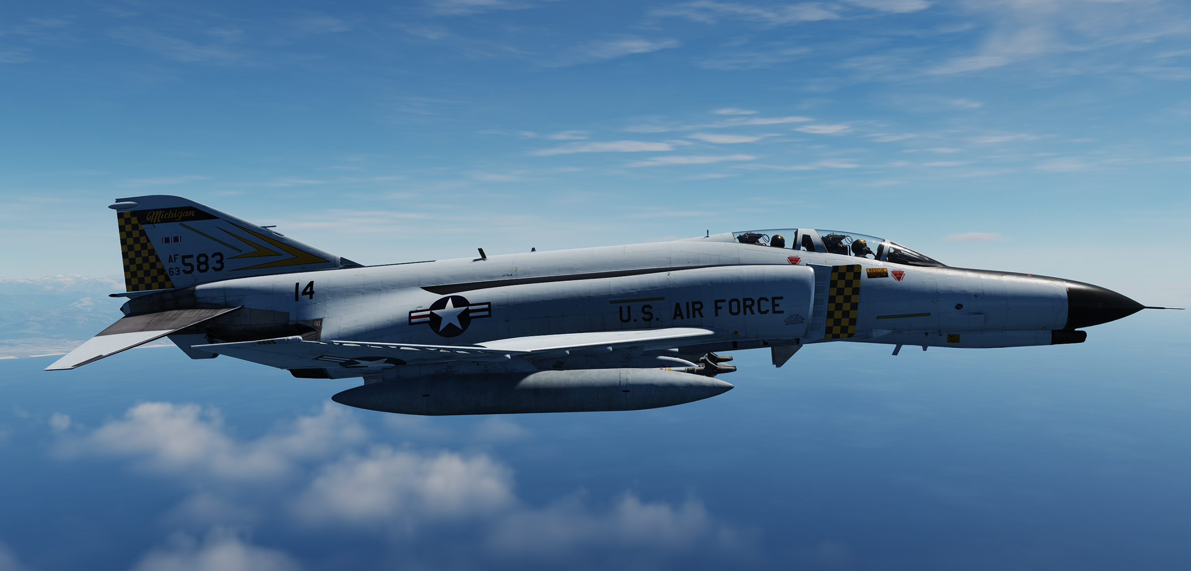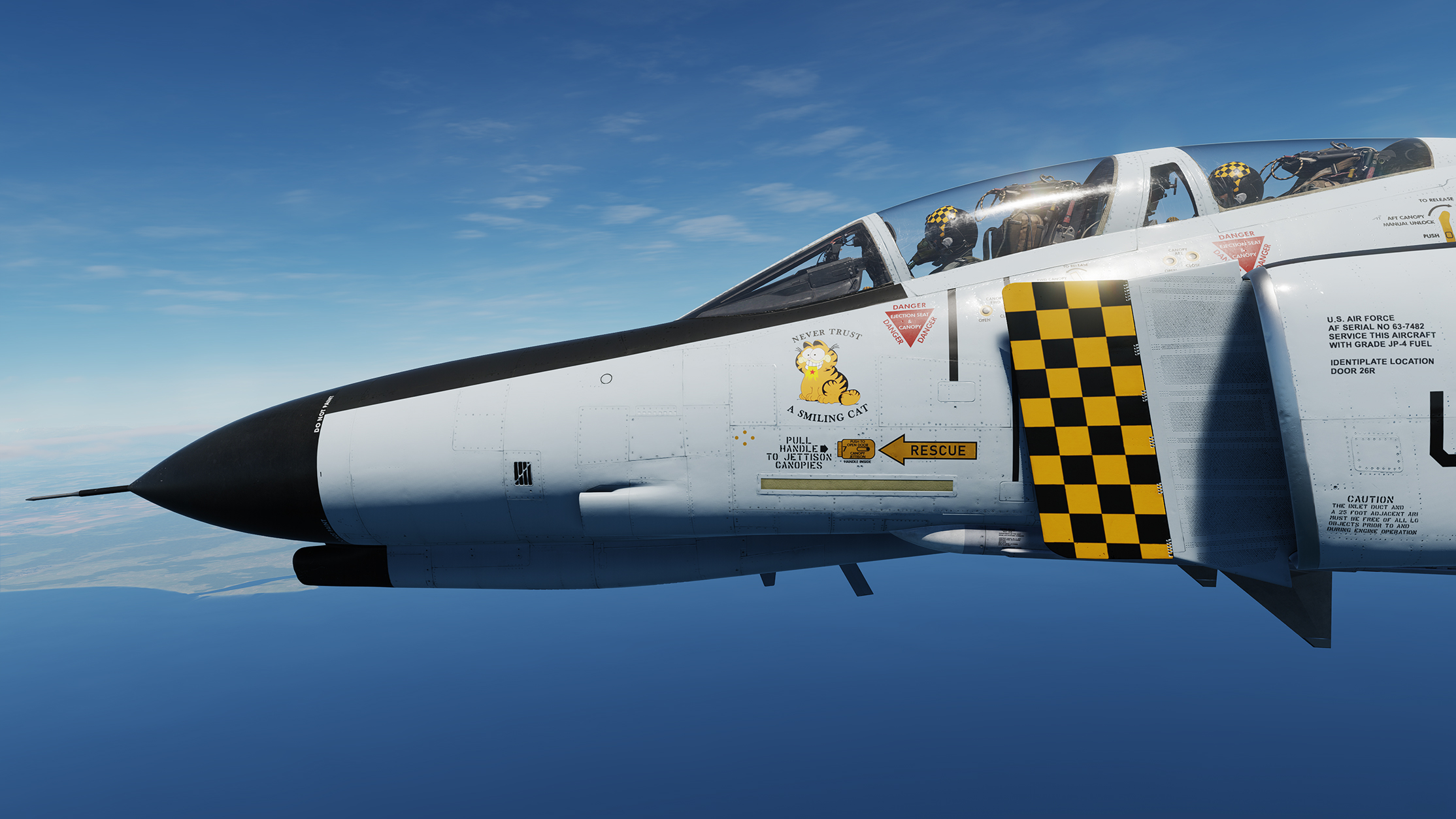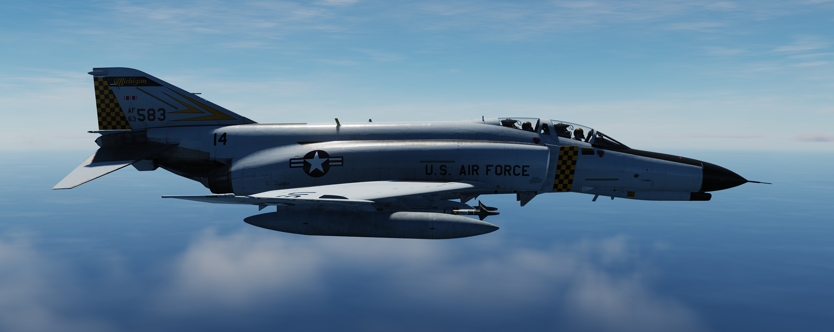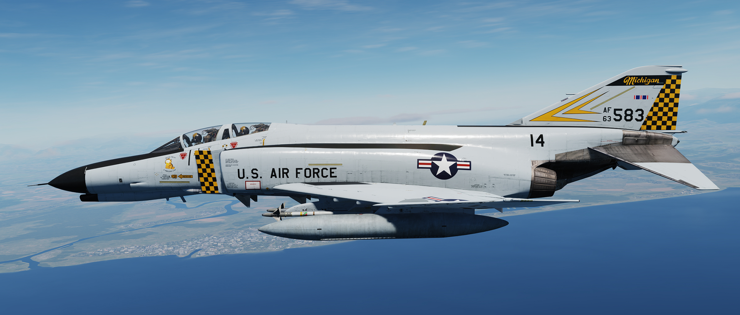 63-7583 "Never Trust A Smiling Cat" as it would of appeared in the early 80's while serving with Michigan Air National Guard's 171st Fighter Interceptor Squadron located at Selfridge Air Force Base. (Now Selfridge Air National Guard Base). In reality, the 171st flew F-4Cs, represented by the F-4E we have in DCS.