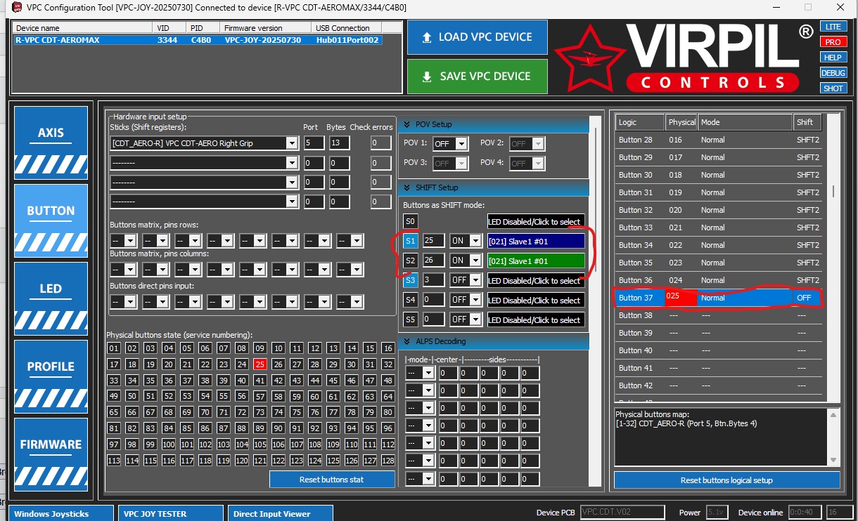 It took time to understand how configure "shift" and make sure things are working smoothly. Software for configuring is Virpil VPC Configuration Tool. Config screenshot is attached.