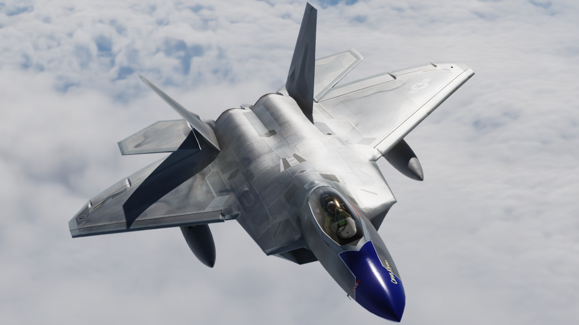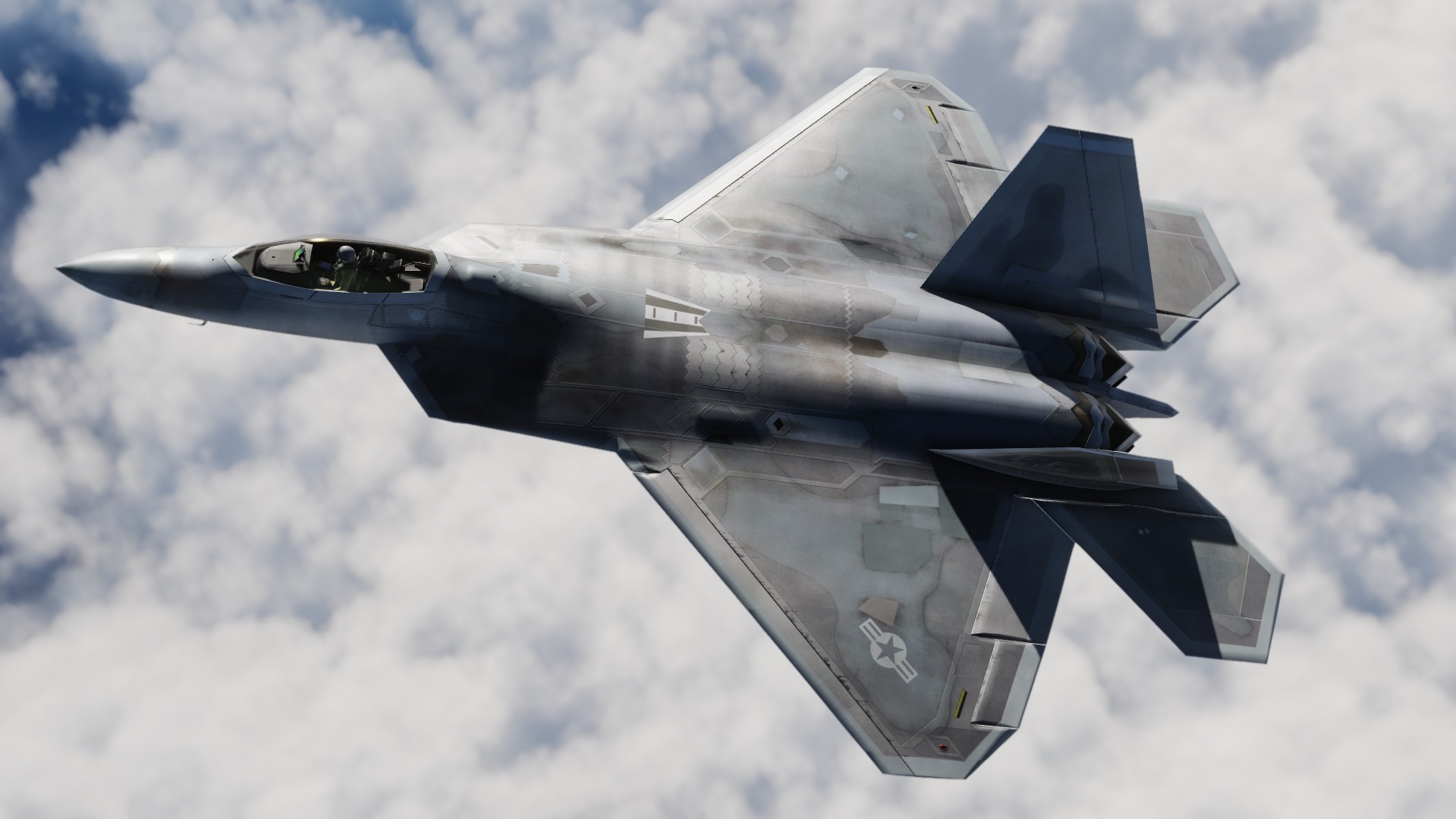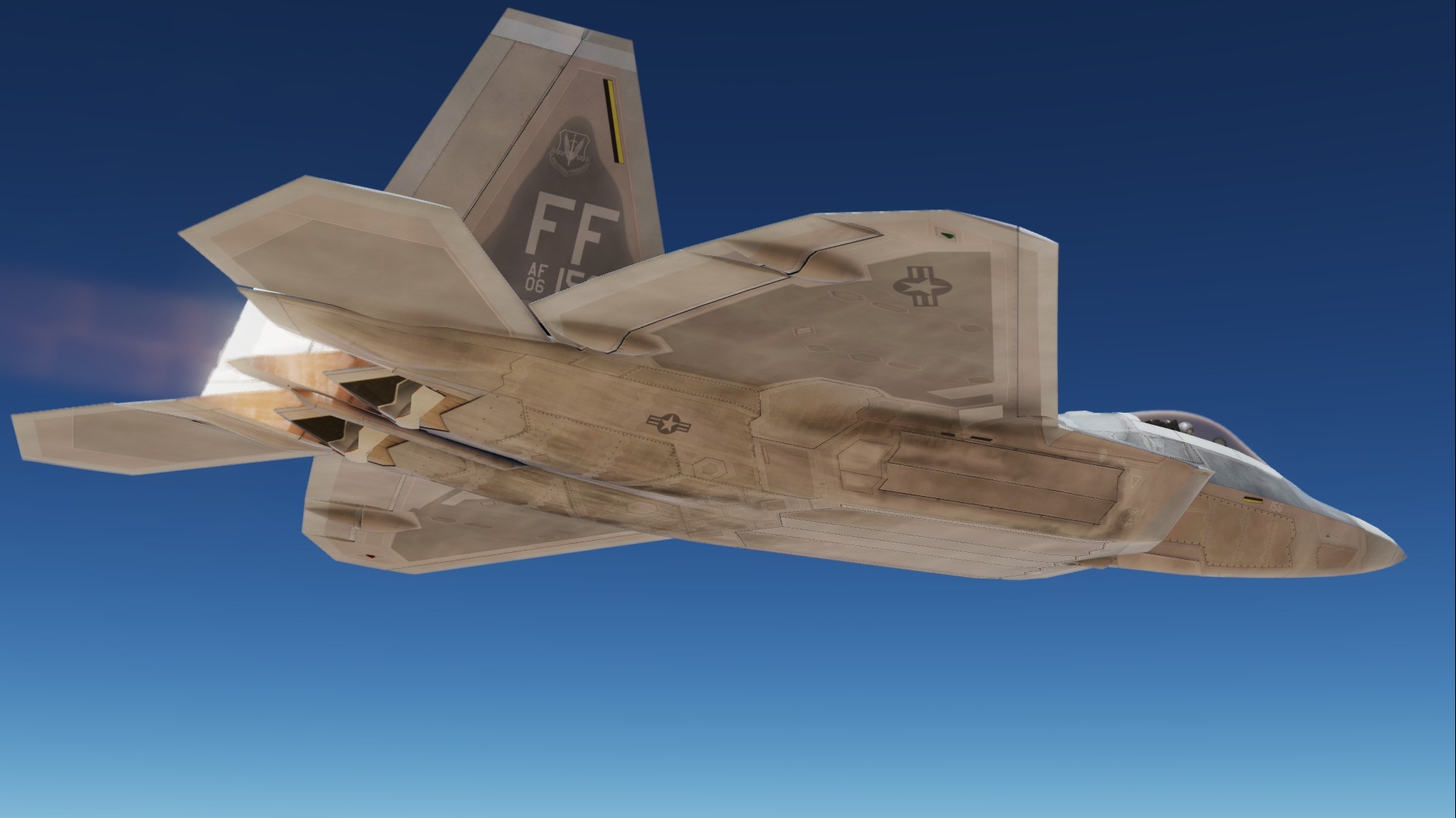 Texture set for Grinnelli Designs F-22A Mod.  Custom Diffuse, Roughmets and Normals Throughout.  This represents the clean/new jet with RAM.  You may replace the texture that comes with the stock mod.  This one is updated using new methods and texture sets.