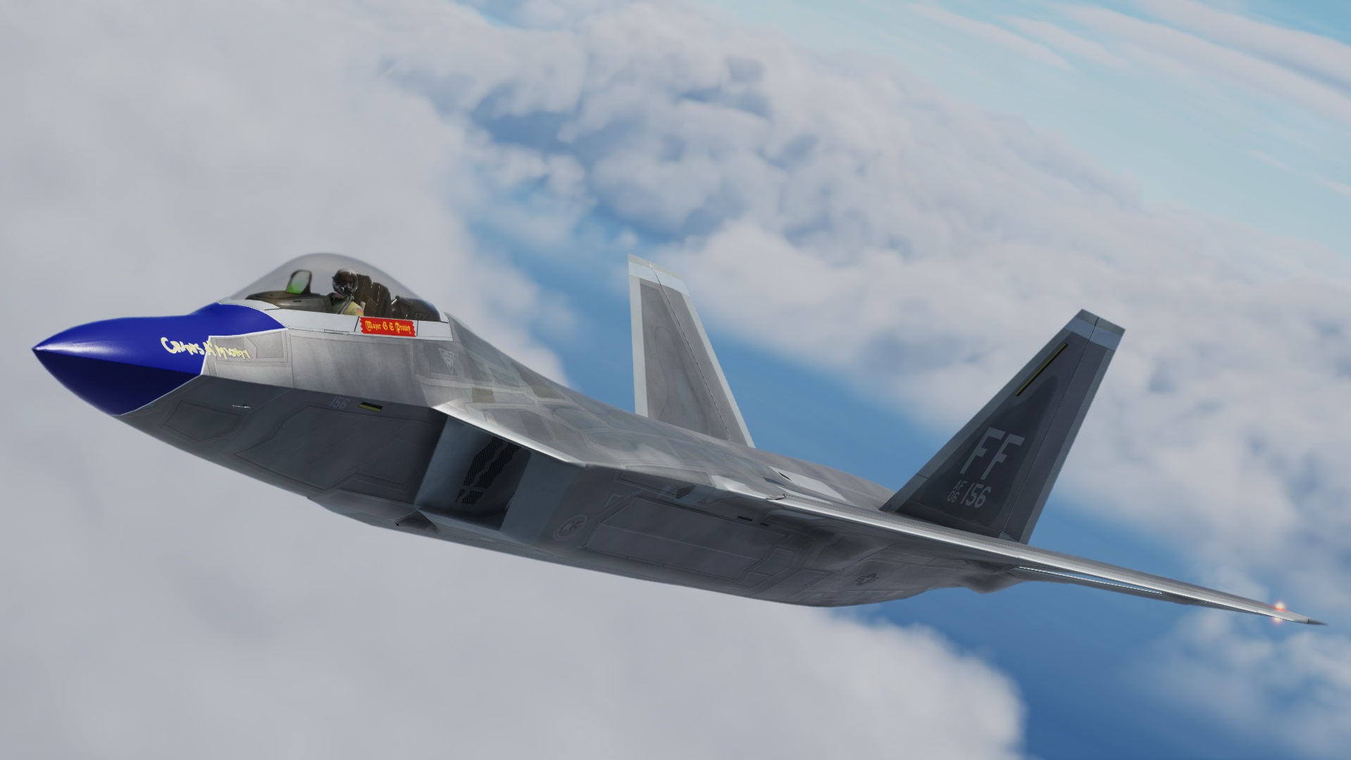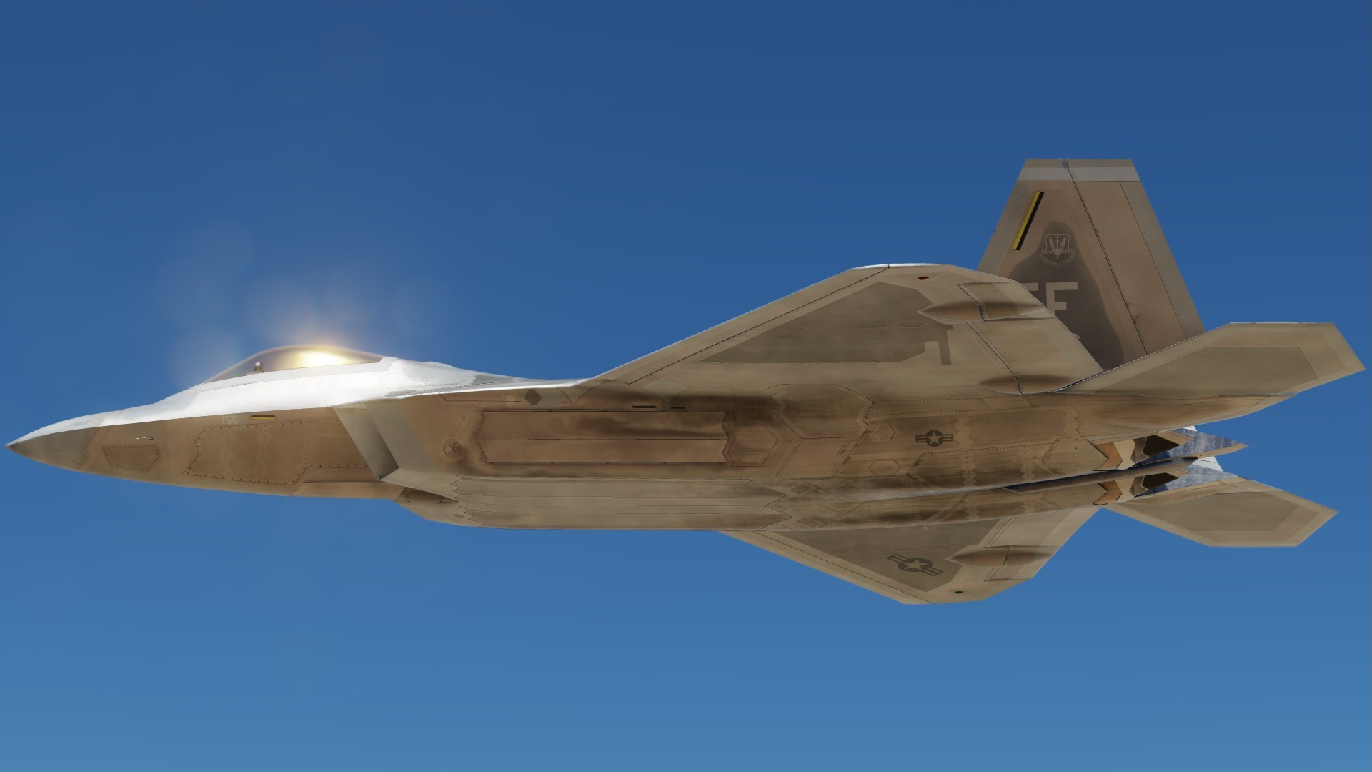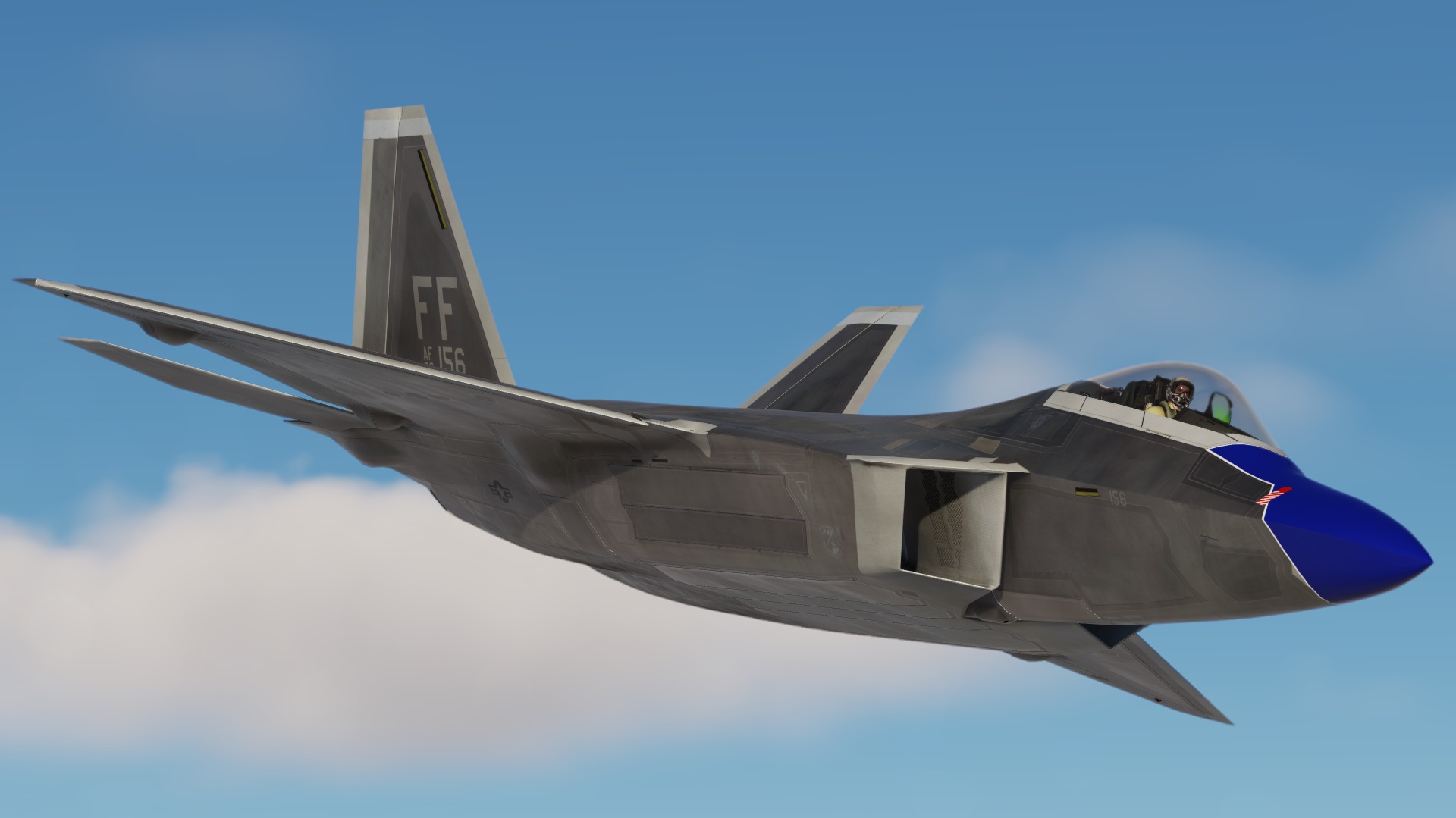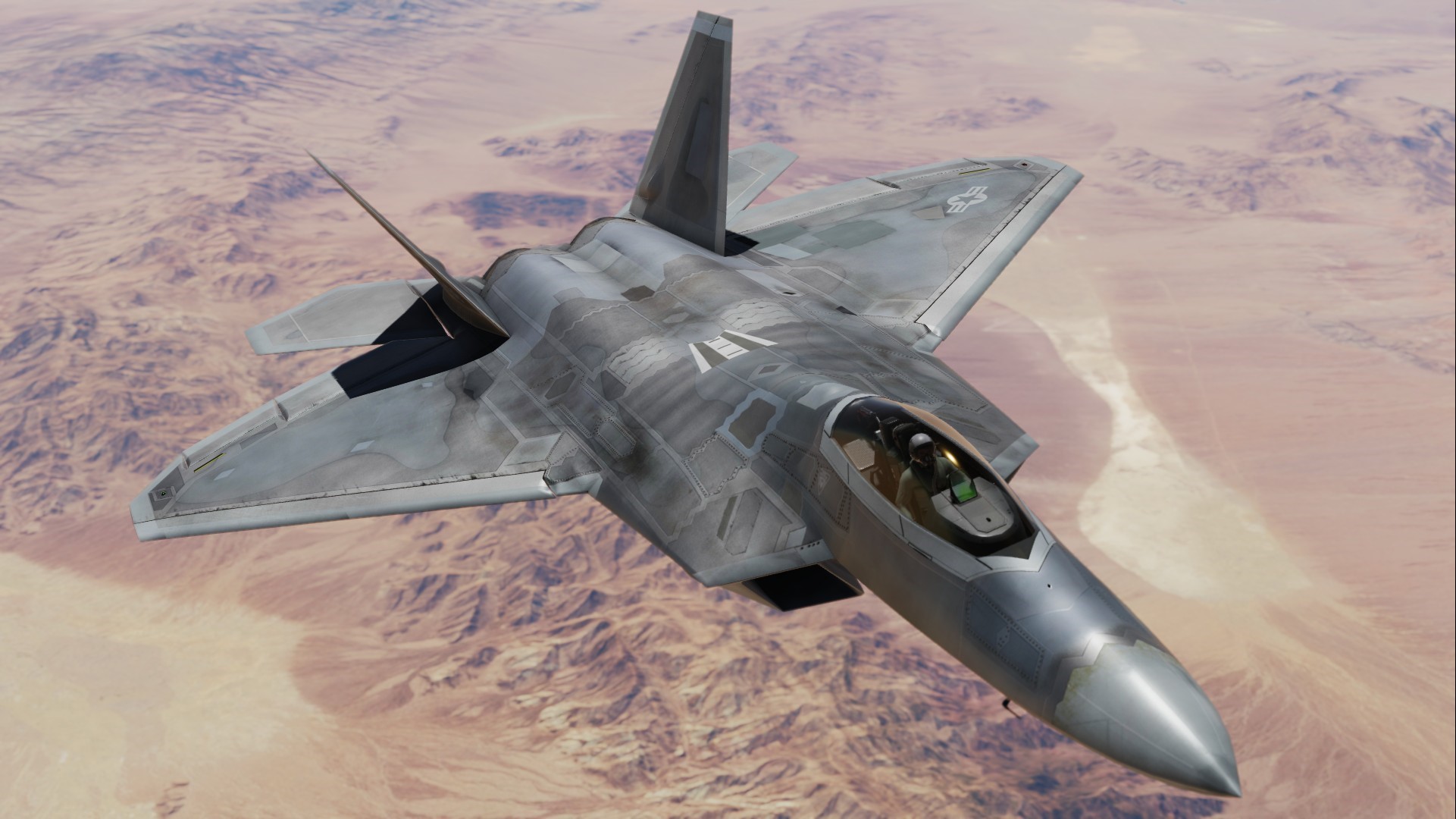 Texture set for Grinnelli Designs F-22A Mod.  Custom Diffuse, Roughmets and Normals Throughout.  This represents the clean/new jet with RAM.  You may replace the texture that comes with the stock mod.  This one is updated using new methods and texture sets.