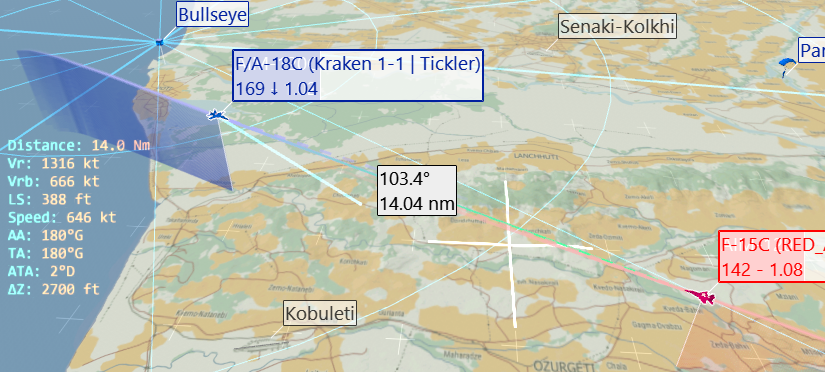 Displays in overlay several useful parameters for BVR combat analysis