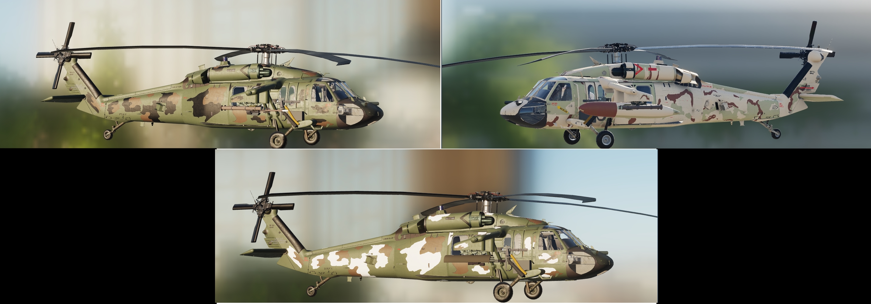 3 color camouflages for UH-60L Blackhawk based on US 3 color desert and US/NATO woodland.
