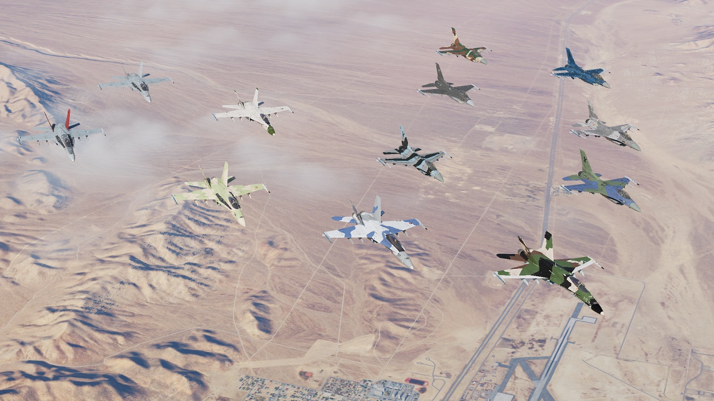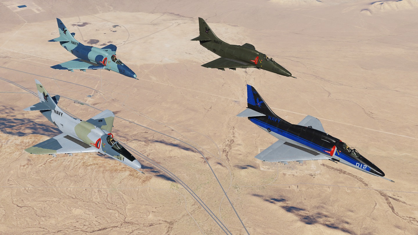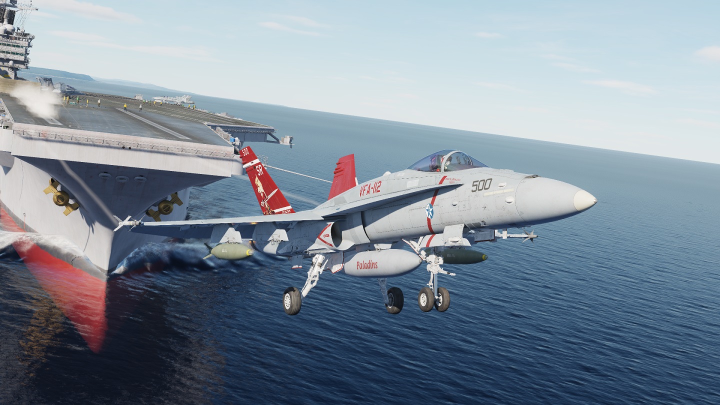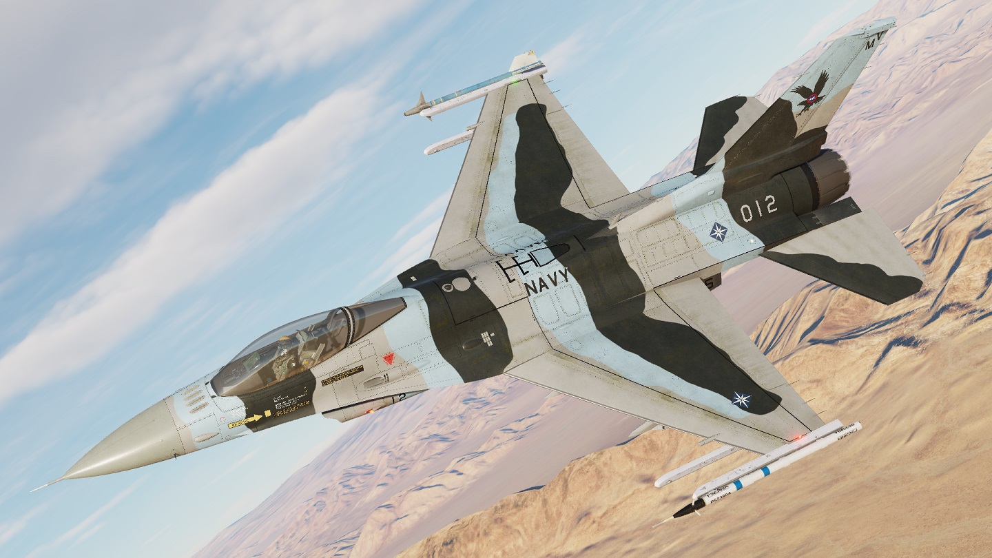 When the squadron is “chopped” to a Marine Expeditionary Unit as the core of the Air Combat Element, additional aircraft squadrons are also attached under the VMM-163 (REIN) designation and don the eponymous eyes on their own aircraft. This skin was two "What If scenarios", first being a Marine Corps Fighter Attack Squadron was attached to the Evil Eyes and wore a legacy VMM-163 flagship livery, and second, if the Marines had adopted the F-14 instead of the Hornet.