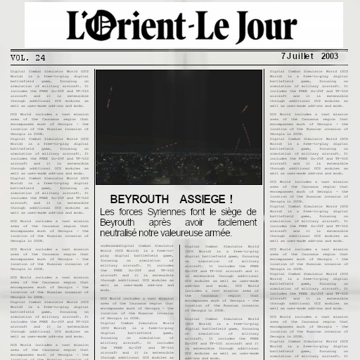 In the 2000s, the Syrians, feeling supported by an increasingly strong Russia, invaded Lebanon again, taking advantage of the relative passivity of Israel. The weak Lebanese forces were quickly swept away and only Beirut still resists. Miraculously, several Western countries then decided to come to the aid of Lebanon to stop the invasion and defend Beirut at all costs.