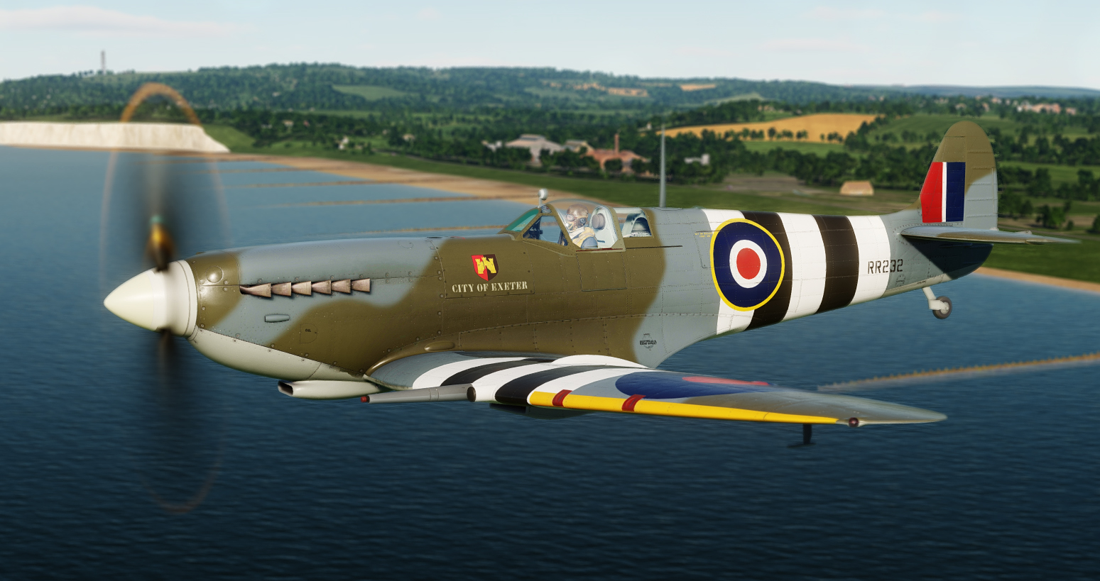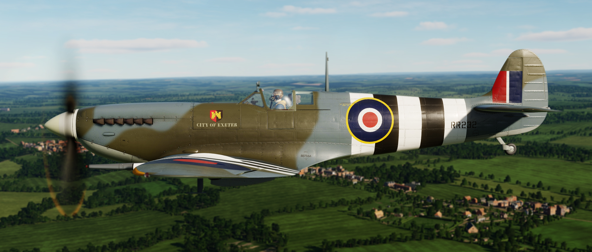 Spitfire RR232 was built at Castle Bromwich by Vickers Armstrong and delivered to the RAF in October of 1944 where it served as a high altitude fighter. Post-war this aircraft was sold to the South African Air Force and was damaged and subesquently put into storage after a "ground loop" incident in 1954. The aircraft made it back to the UK in 1986 and was again made airworthy in December 2012. The aircraft was painted as "City of Exeter" and performs regularly at airshows around the UK.