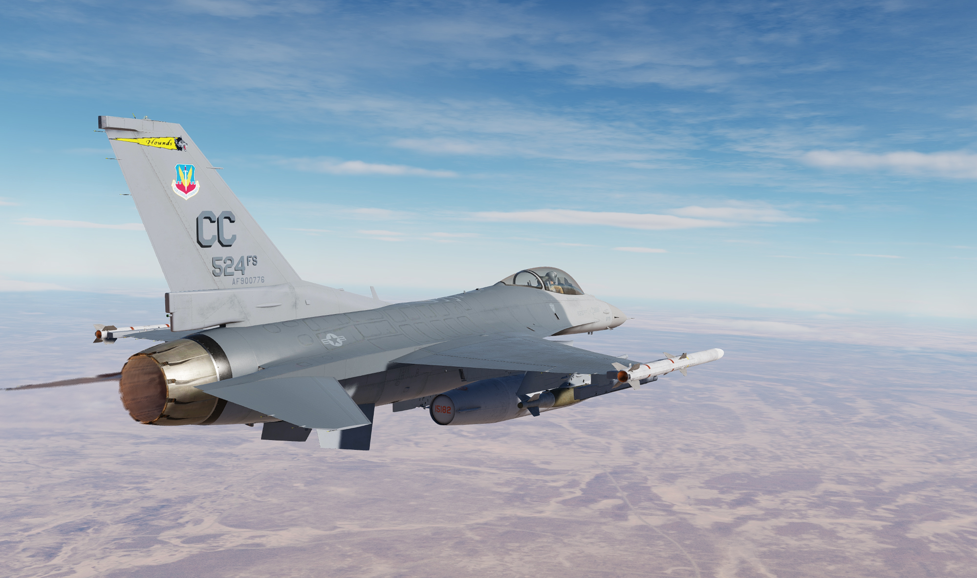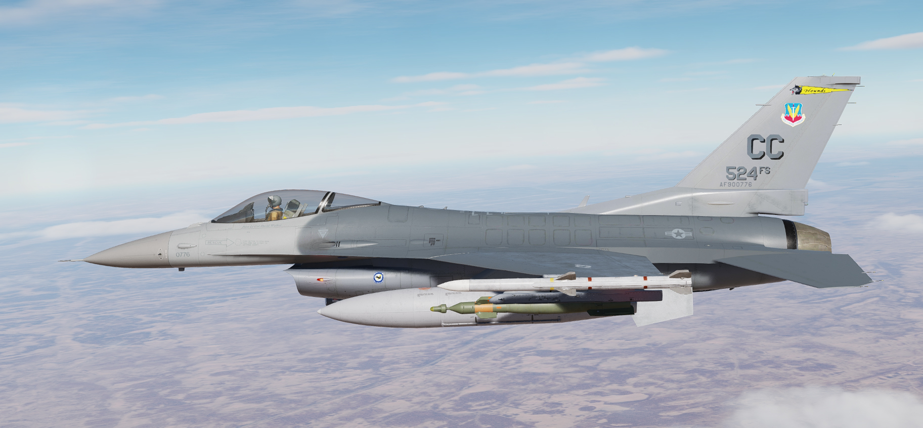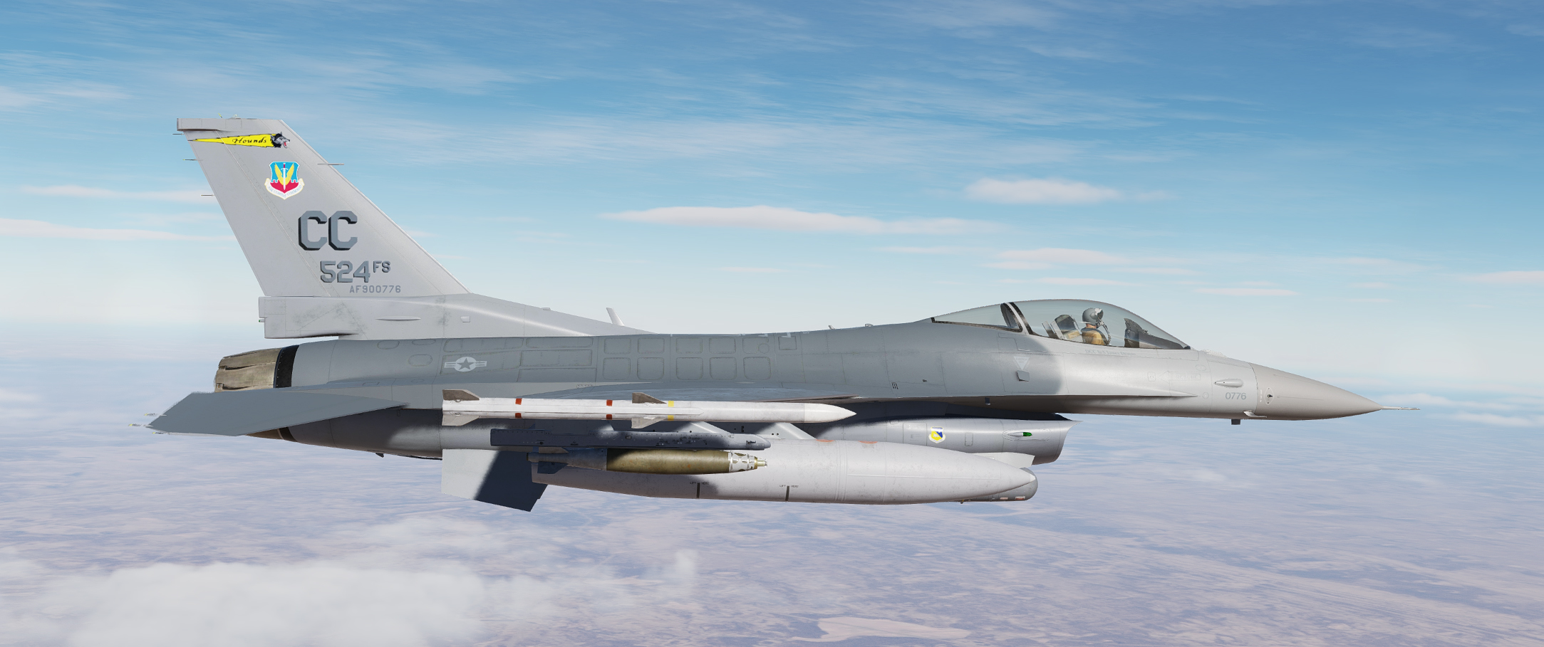 The original 90-0776 was built as a F-16C Bl. 40K assigned to various unit across the Airforce.  Represented here with input from former "Hounds" is the aircraft with the 524th Fighter Squadron "Hounds of Heaven" as it appeared in 2006 during combat operations in Operation Iraqi Freedom.  This aircraft was widely regarded as an "excellent" aircraft by pilots and maintainers alike.  It was a "Code 1 flier".  Unfortunately this aircraft was heroically lost in Operation Iraqi Freedom on 27 November 2006.   See MAJ Troy "Trojan" Gilbert's Distinguished Flying Cross write up below.
