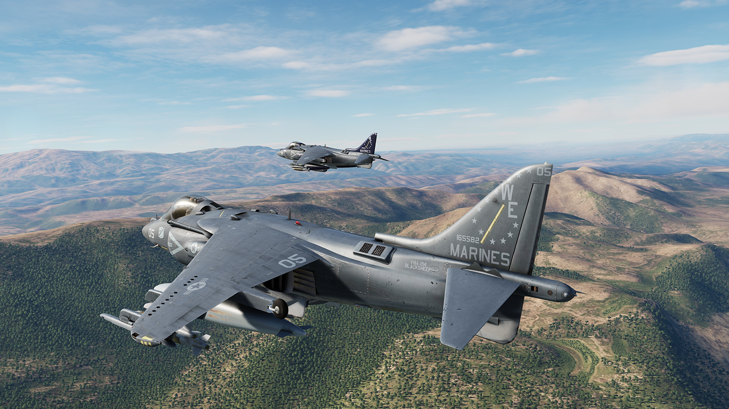 WE-01 and WE-05 from VMA-214 "Black Sheep" as they appeared during the 2020 deployment.  Note realistic yellowing of white paint areas, dirt, and crew names.  WE-01 was the commander's aircraft at the time of deployment.