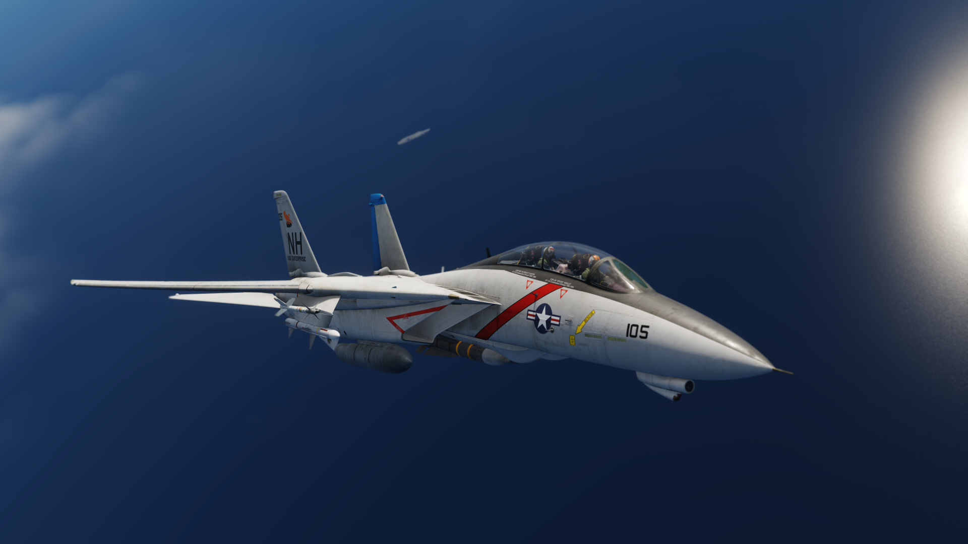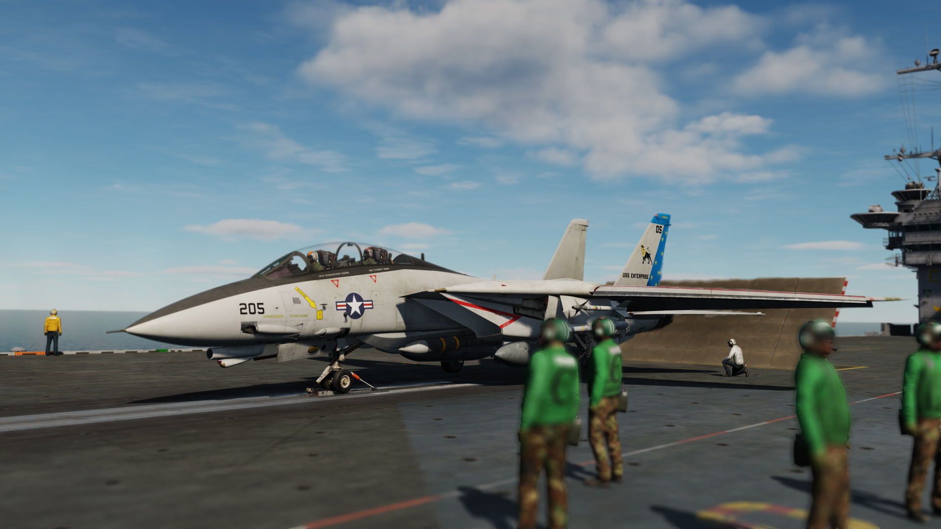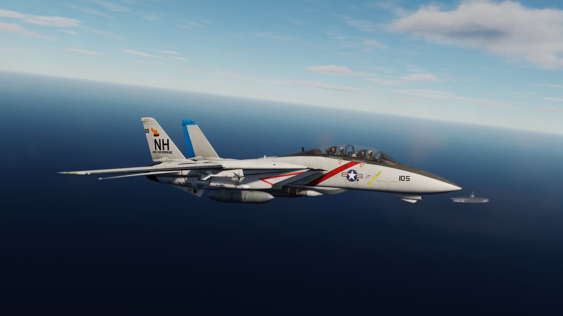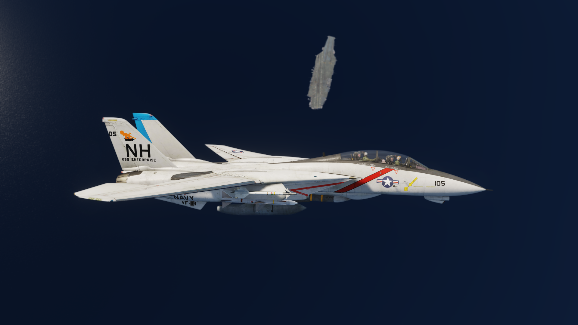 The USS Midway (CV-41) Museum presently hosts this F-14A on her deck with a very unique paint job.  See description below.   Compatible with both F-14B and F-14A.  To achieve this, install the same folder into both "A" and "B" livery folder.