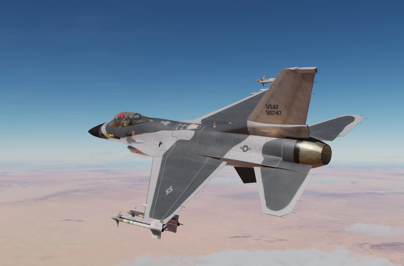 Serial Number 75-0747 was the 3rd Full Scale Development prototype to undergo testing at Edwards AFB.  FSD No. 3 was instantly distinguishable by it's two-tone paint scheme featured here.  This aircraft later became the  F-16XL and eventually a two seat F-16XL/B