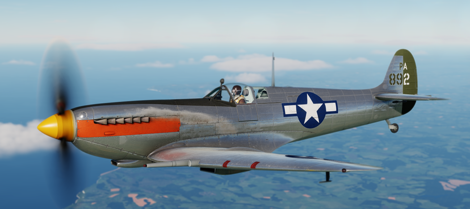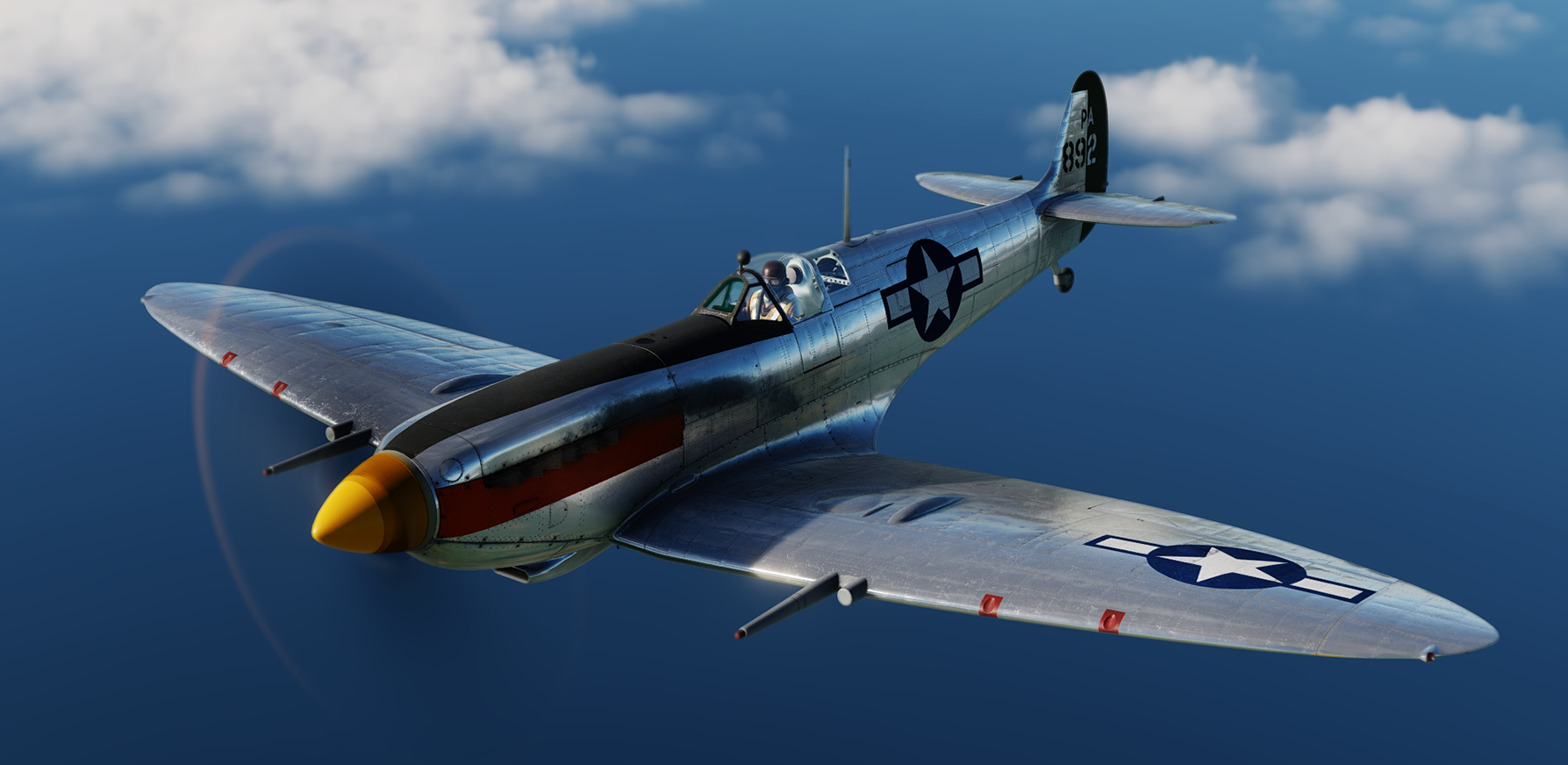 Towards the end of the war, some photo recon Spitfires shed their "PR Blue" paint scheme in favor of the more high performing "bare metal" finish.  Here is how PA-982 appeared in 1945.  It is debated whether the nose was painted blue or yellow at that time, however based squadron historical records, I have chosen yellow.