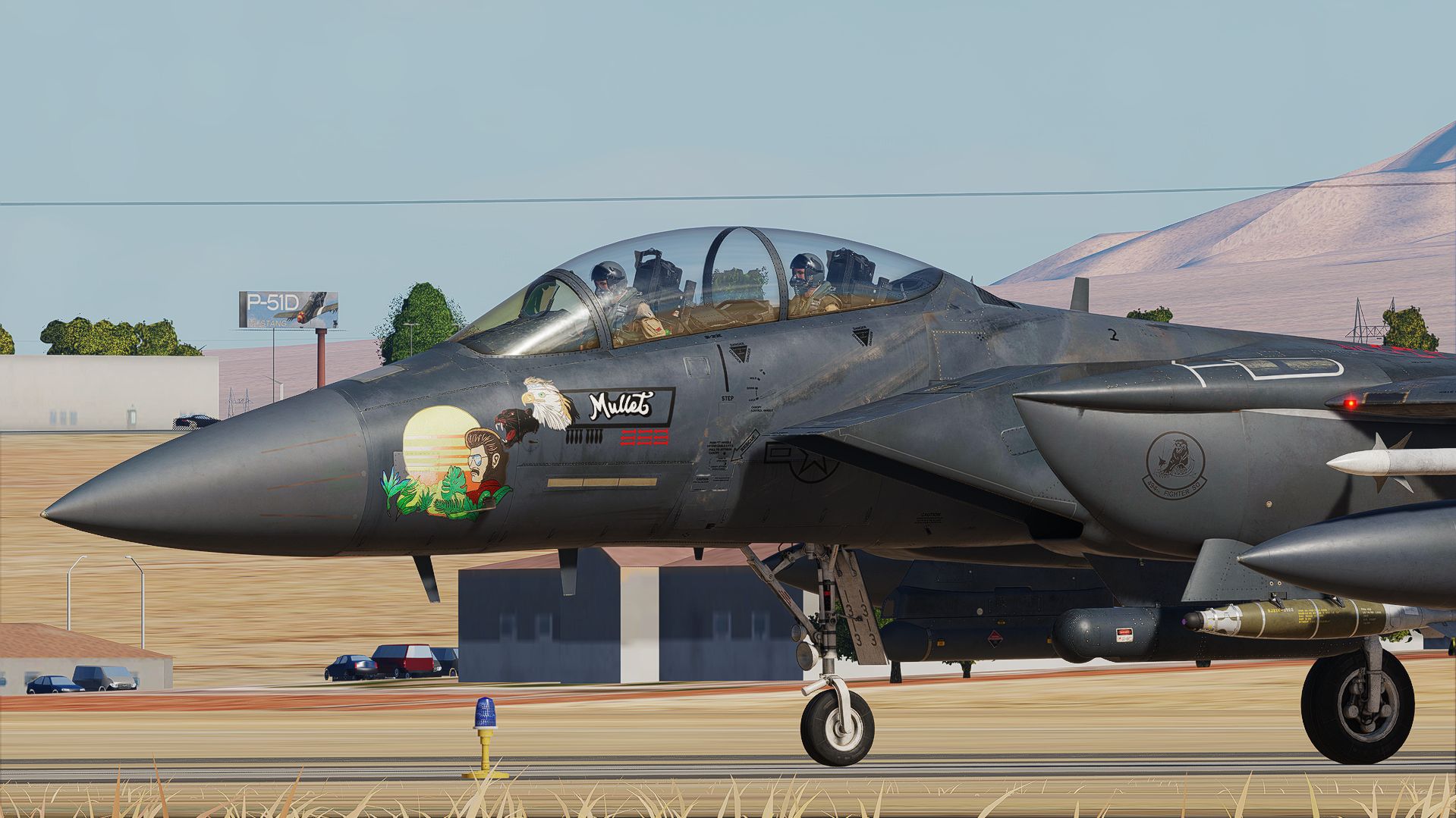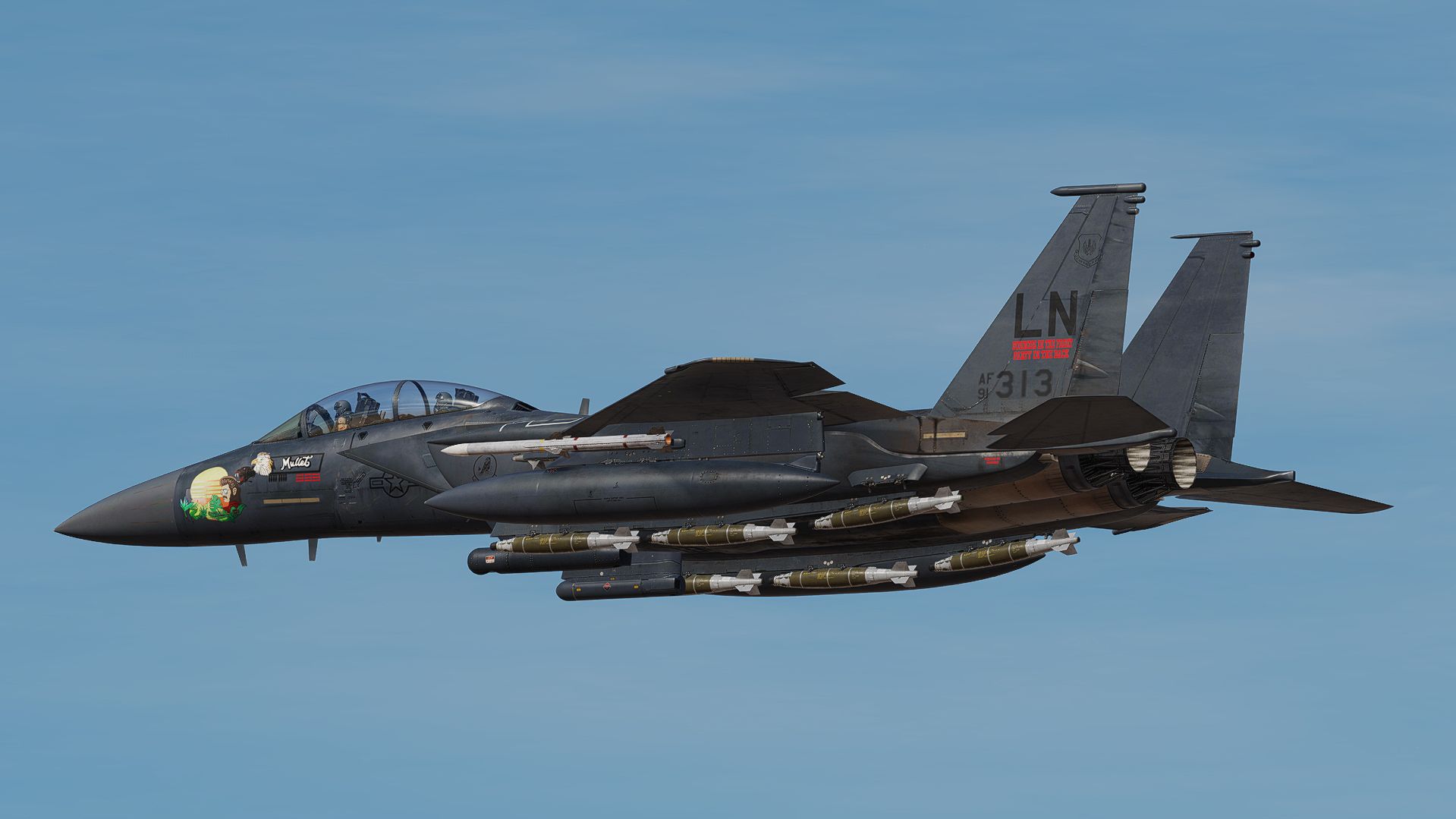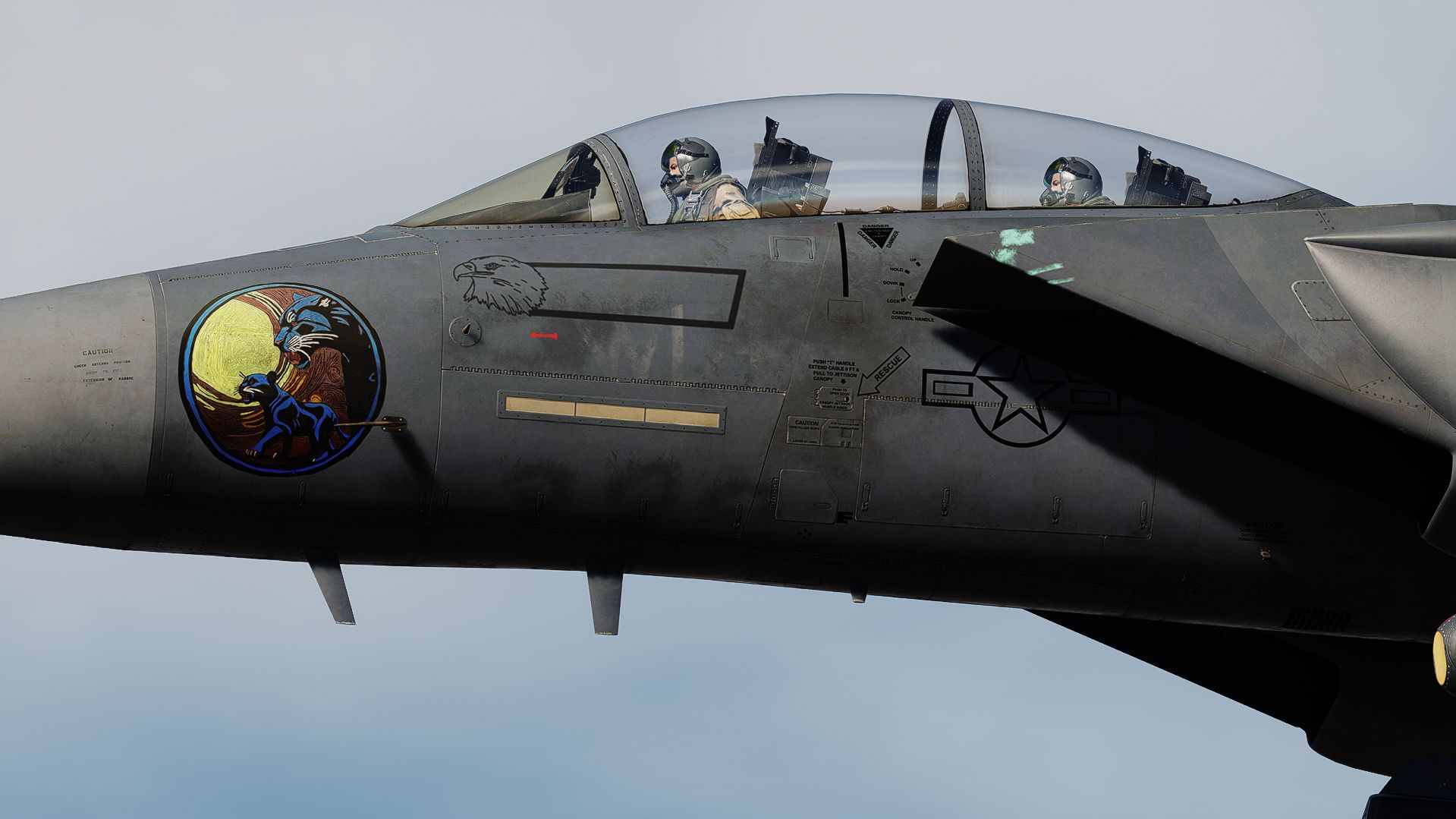 In October 2023, The 494th "Panthers" were depolyed fr om RAF lakenheath to a undisclosed loction in southwest asia. during their depolyment the 494th was tasking with striking mutiple high value targets, providing CAS for ground troops, The 494th EFGS painted their 12 F-15E strike eagles with various nose arts, kill marks and names. 01-2002 was named "WARLORD", painted 3 bomb marks as well as a Robot warrior with fire going out of its head. with smoke going out of its chins. Towards the end of their depolyment the 494th was joined by the RAF, RJAF and 335th "CHIEFS" and tasked with shooting down UAS (drones) and cruise missiles send from Iran towards isreal. 01-2002 shot down 0 drones. but toghter the 494th shot down 50+ drones. 01-2002 also got its speedbreak painted wh ere it says "WITNESS THE MIGHT OF THE MACHINE"