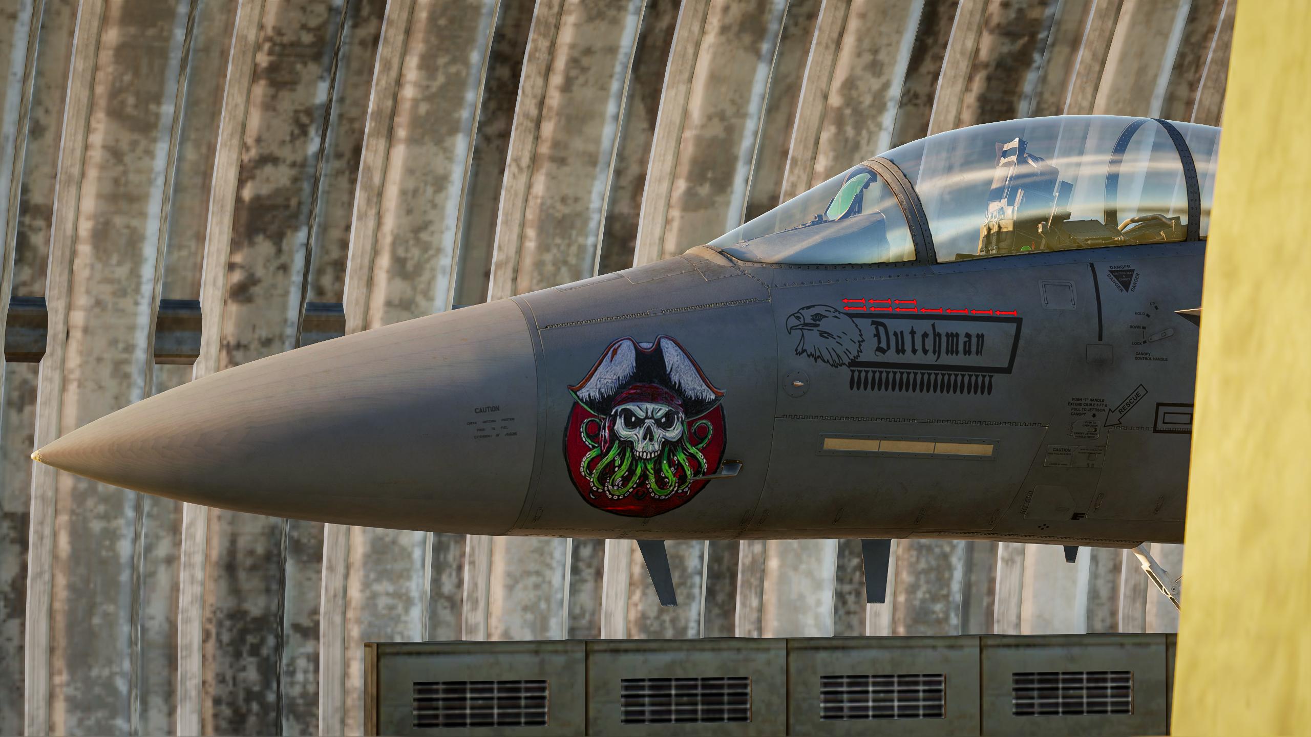 In October 2023, The 494th Fighter Squadron "Panthers" were send to a undisclosed location in the middel east, for their CETCOM depolyment. Shortly after they were depolyed. the 494th were tasked with striking mutiple syrian targets, During their Depolyment, the 494th EFGS, and their Crew chiefs painted their 12 jets with various nose arts, Name plates and kill marks. 91-0335 was named the "DUTCHMAN" and painted a octopus-Pirate. aswell as mutiple bomb marks. Later on, with the iranian Drone attack on Isreal, the 494th togheter with the 335, RAF, RJAF, were tasked with shooting down these UAS's, and cruise missiels. the 494th shot down over 50% of the drones. 91-0335 was painted 10 RED AIM-9X marks to symbolize the drone shoot downs. When the 494th returned from their 7 month depolyment they showed their new nose arts and kill marks before shortly removing them. 91-0335 was spotted without a nose art around 7/2/24. but still with the kill marks.