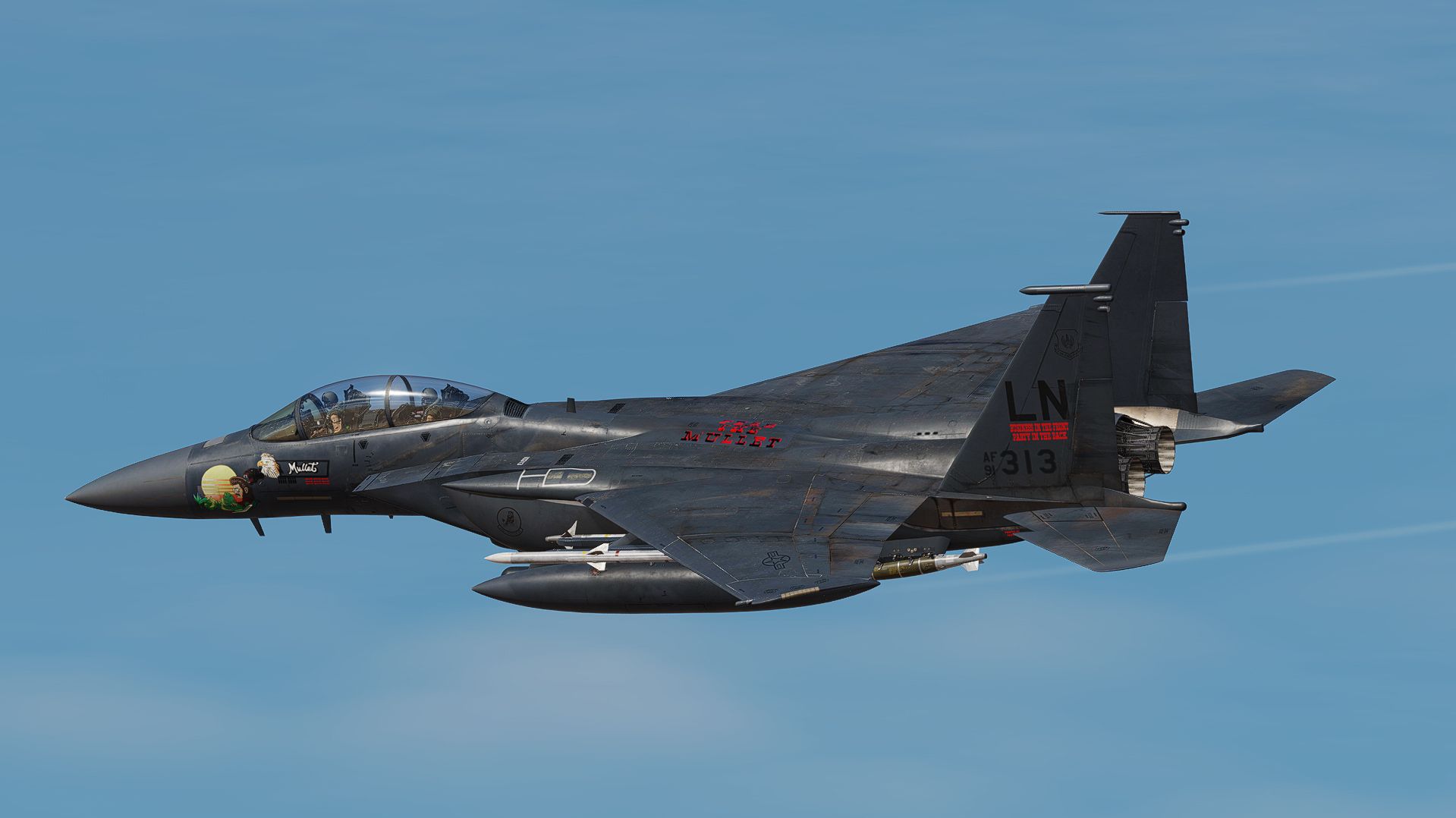 In 2023, The 494th "PANTHERS" depolyed from their homebase at RAF lakenheath. To a undisclosed location in the middel east. 91-0313 was painted during the start of the depolyment, by the maintereners and Crew Chiefs. 91-0313 was named "MULLET" and painted 3 different nose arts. a Eagle (For the F-15E) A panther (Squadron mascot) and a Guy with a Mullet (jet name) Later on their depolyment they painted MULLETs speedbreak with "FEAR THE MULLET"  during the time depolyed 91-0313 went viral around X (twitter) for a picture from a Tanker featuring a ZYN on the dashboard. Towards the end of their depolyment the 494th, 335th "Chiefs", RAF and RJAF were tasked with shooting down iranian drones towards Isreal. Mullet was painted 9 aim-9x shaped marks to symbolize the shooting down of th droens, else it recived 8 bomb marks. Towards their home comning they painted "BUINESS IN THE FRONT, PARTY IN THE BACK" on the tail. The 494th returned safetly home to RAF lakenheath in start may.