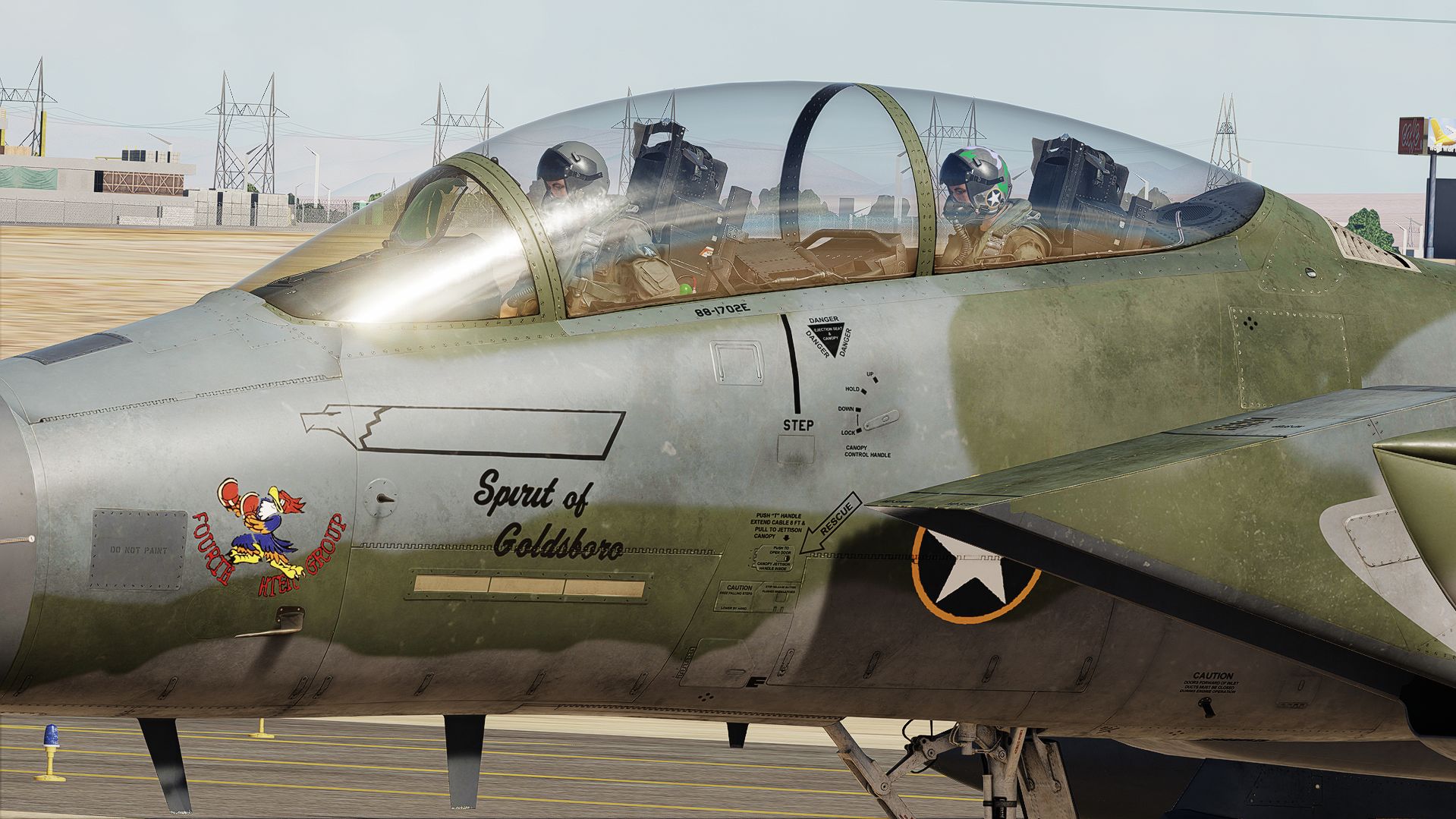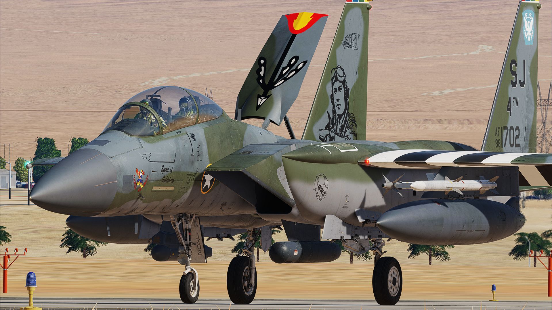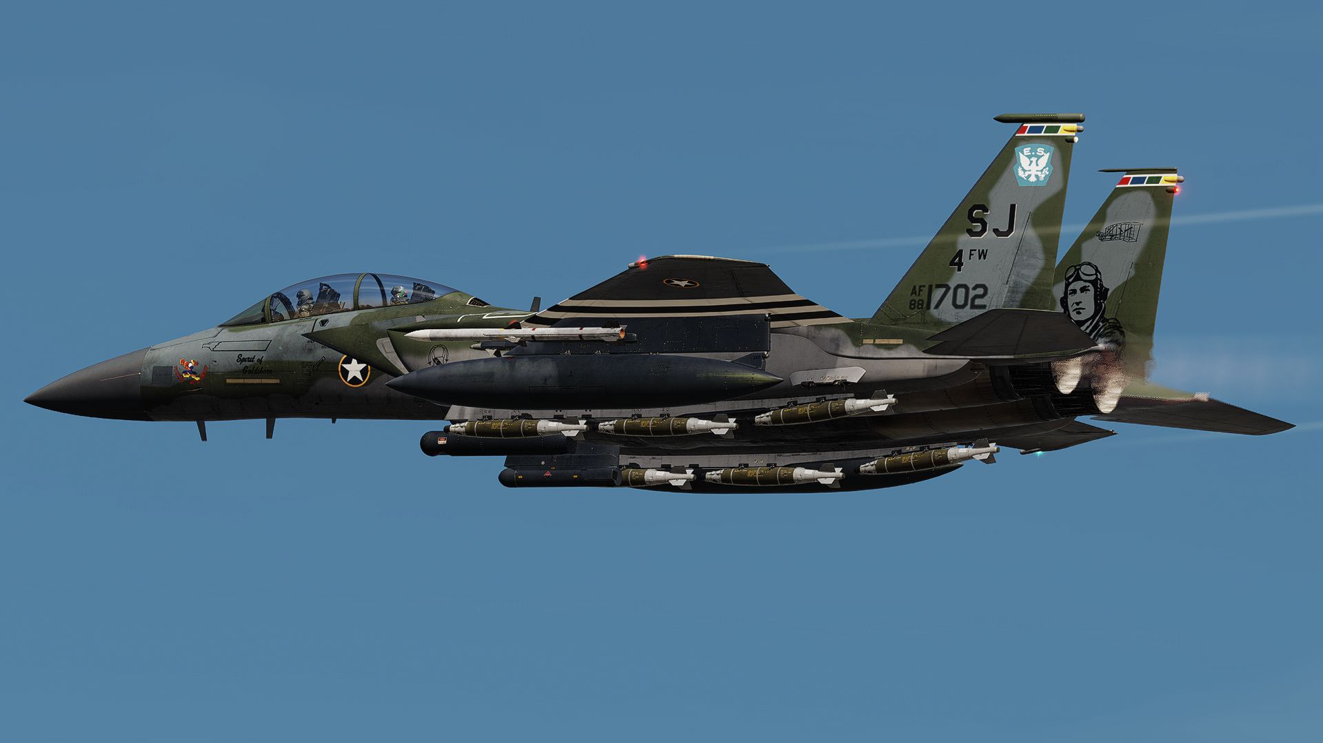 Based of AF88-1702 from the 4th Fighter wing, the 334ths "Eagles" 88-1702 named “Spirit of Goldsboro" is the 4th Fighter wings Flagship jet, painted in a WW2 commemorate the wing’s heritage and celebrate the men and women who have paved the way for the wing. The history started with the Eagle Squadrons from the Royal Air Force, developed under leaders like Col. Don Blakeslee pictured on the wing flagship