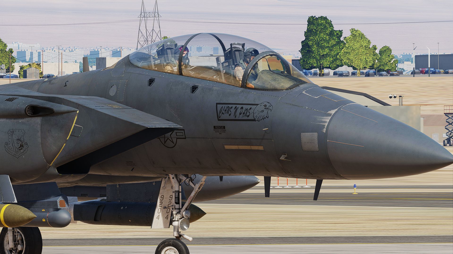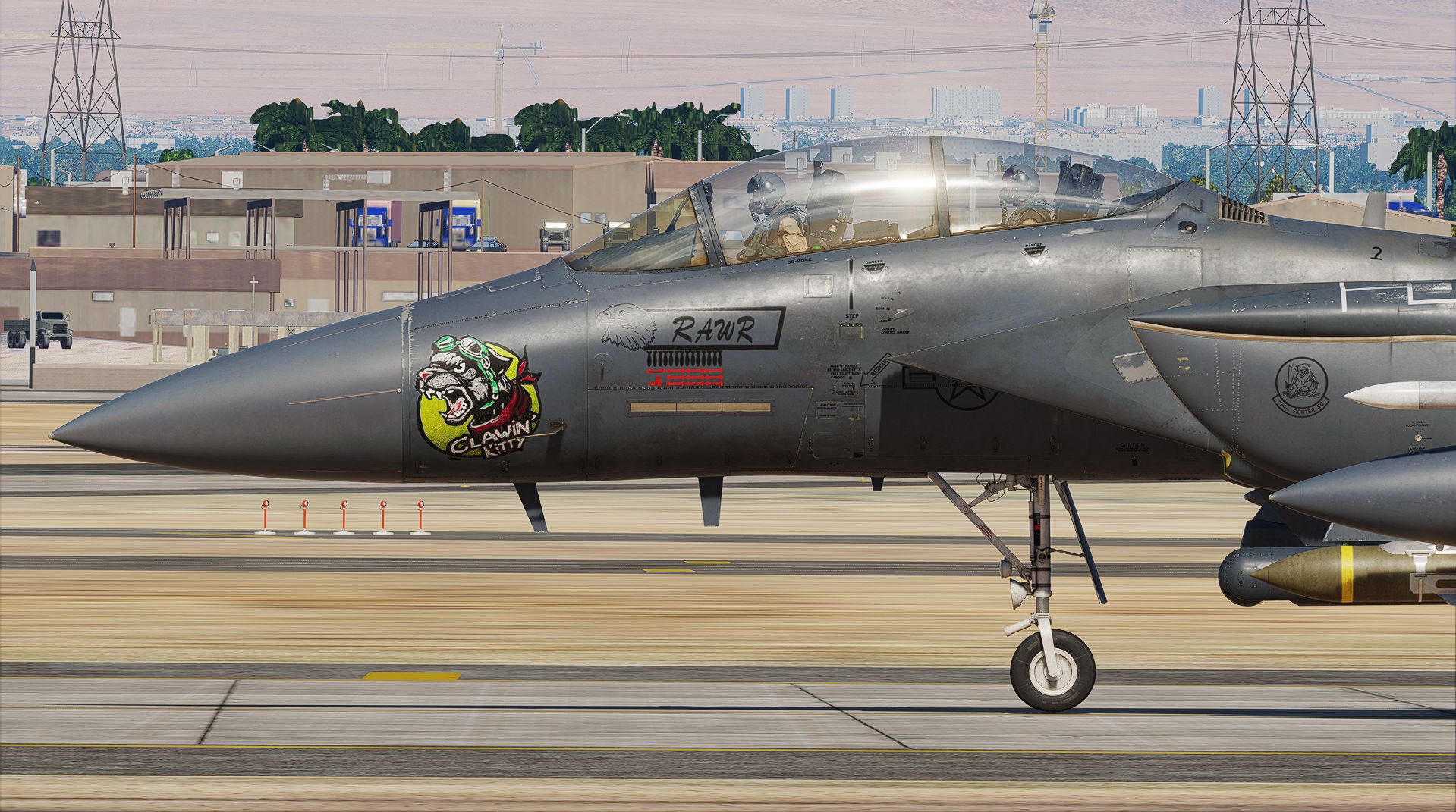 In 2023, the 494th Panthers depolyed to a undisclosed location in the middel east for their CETCOM depolyment, Where the Panthers were tasked with striking various targets and shooting down drones, shortly after depolying 96-0204 previous "CHUM" was painted the first nose art on their depolyment. 96-0204 was named "Clawin' kitty" which was a reference to a P-40 from the RCAF named "Clawin' Kitty" She was painted a similar inspired nose art, with a Panther cub instead. During their depolyment 96-0204 dropped mutiple bombs which got marked, aswell as a SA-6 Sam-site. later on with the depolyment the Iranian attack on Isreal, the 494th, 335th and mutiple air forces were tasked with shooting down the drones & Cruise missiles. 96-0204 shot down 10 drones which was symbolized as a Red AIM-9X sidewinder. After getting her nose art. Her name plate was painted to say "RAWR" and the right saying "Claws n' Paws"