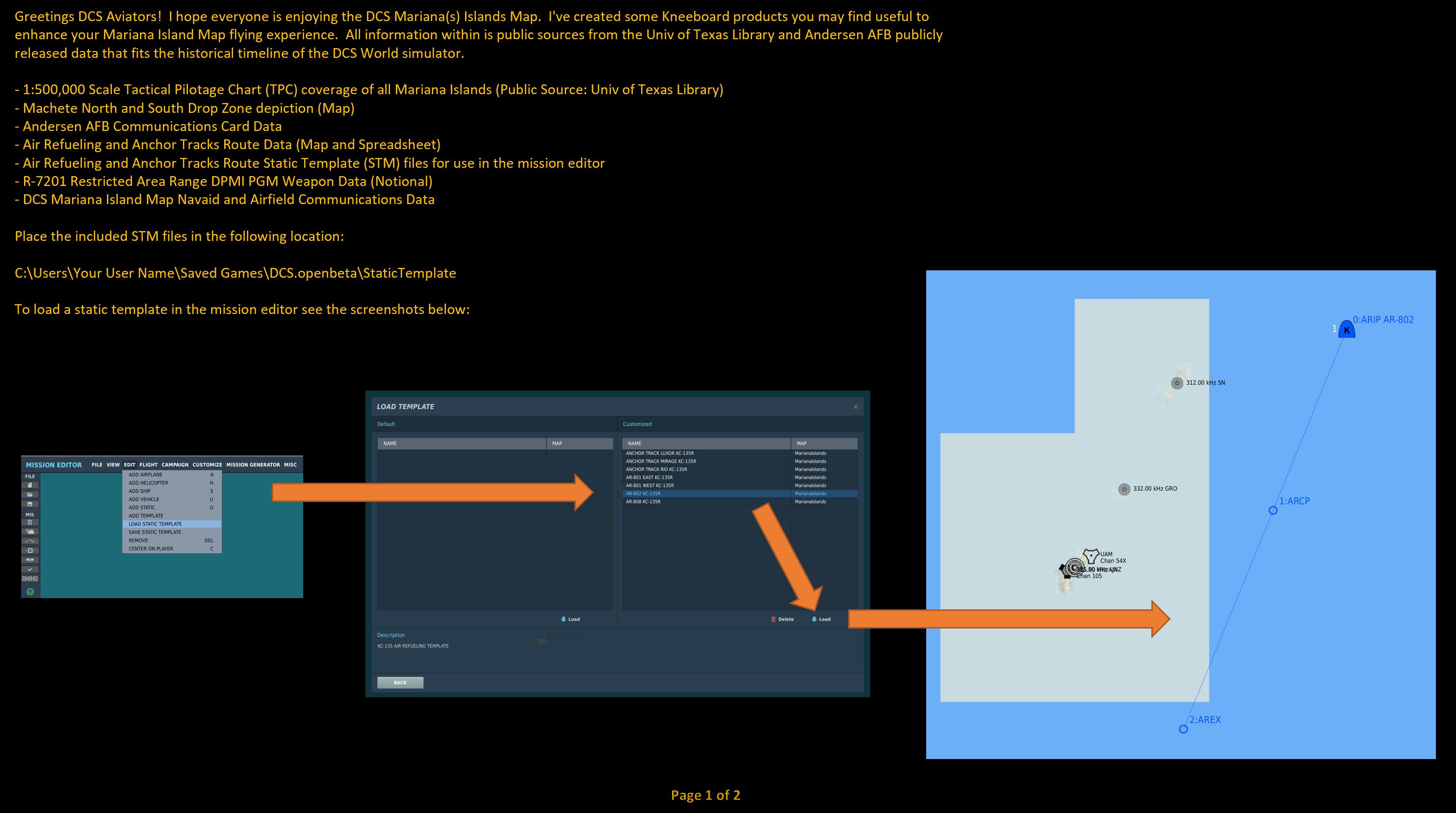 Greetings DCS Aviators!  I hope everyone is enjoying the DCS Mariana(s) Islands Map.  I've created some Kneeboard products you may find useful to enhance your Mariana Island Map flying experience.  All information within is public sources from the Univ of Texas Library and Andersen AFB publicly released data that fits the historical timeline of the DCS World simulator.  This Version 1.3 Update includes many new features. Please read the enclosed readme for changes and additional details.
