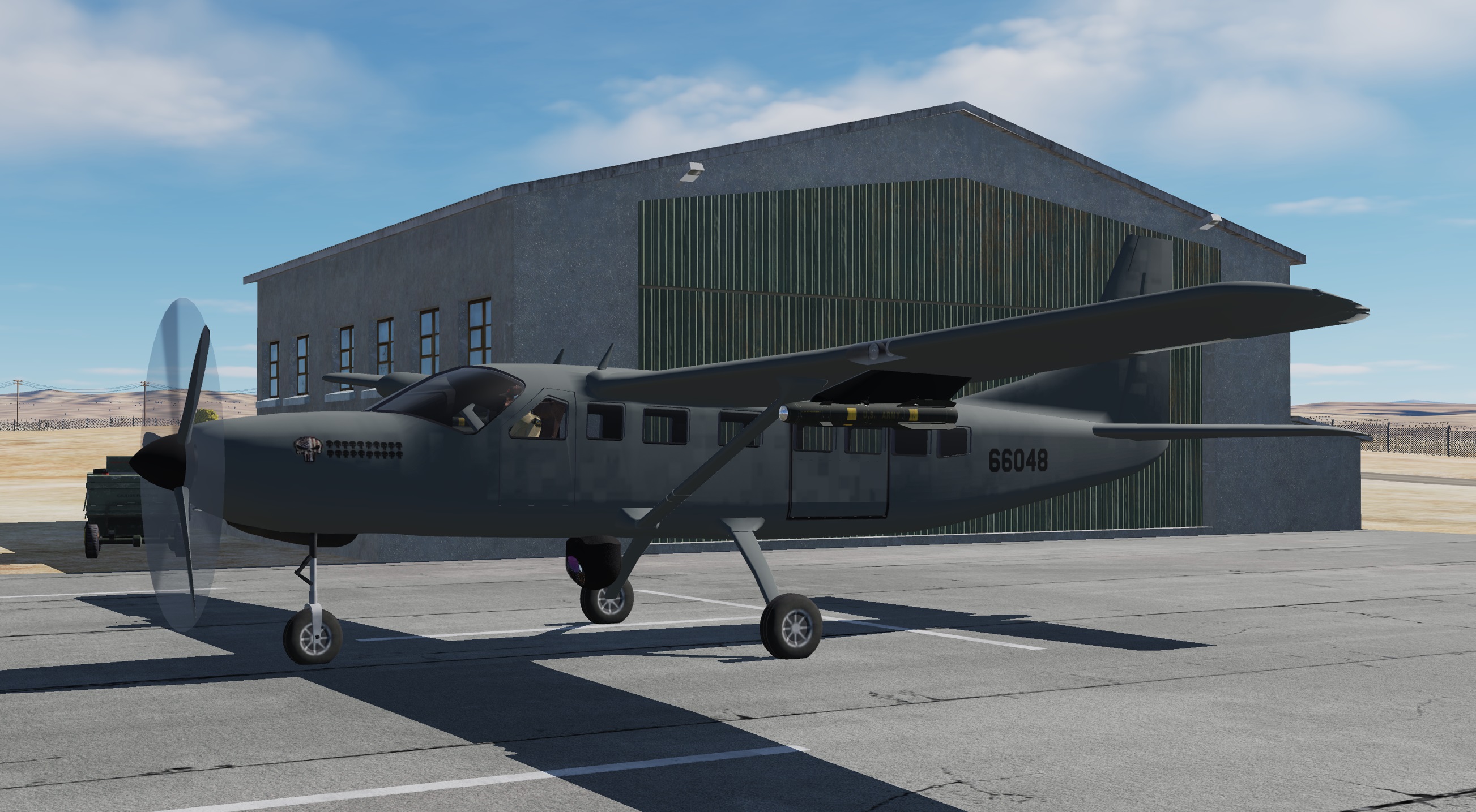 This is an AI Mod only derived from FREEWARE.  It adds the Cessna Caravan C-208B (Civil), and the AC-208 Eliminator, MC-208 Guardian and U-27A Combat Caravan (Military) aircraft for use via the Mission Editor.  Please read the included read me file instructions for install and other important information.
