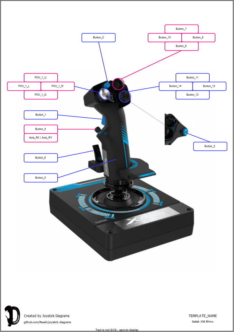 Create a diagram automatically for your X56 H.O.T.A.S. Stick device. This template can be used standalone, or with the Joystick Diagrams software which will automatically populate directly from your DCS Configuration!