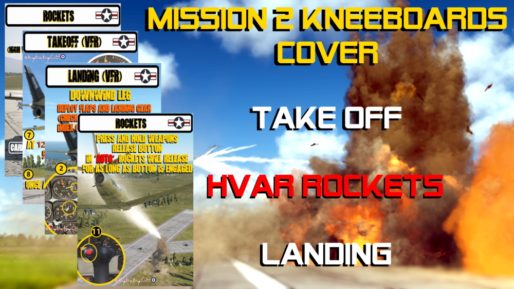 HVAR Rockets Training Mission for the F-86F Sabre. Being a VR pilot, I'm creating a series of custom kneeboards which have been largely inspired from Chuck's amazing guides. This quick mission was also heavily influenced by 'deephack's awesome youtube video. I wanted to be able to learn-as-I-go from within the headset and the mission-specific kneeboard missions also act as a handy 'refresher' when you come back to a module after a time away. This particulartraining mission flight contains 28 kneeboard plates covering TAKEOFF, HVAR ROCKETS and LANDING.