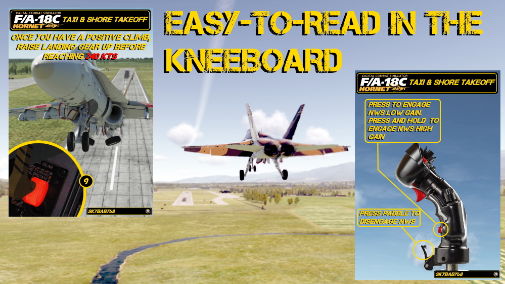 This particular single mission flight contains 49 kneeboard plates covering COCKPIT FAMILIARISATION, STARTUP PROCEDURE, TAKEOFF, ENGINE MANAGEMENT & FLAMEOUTS and LANDING.