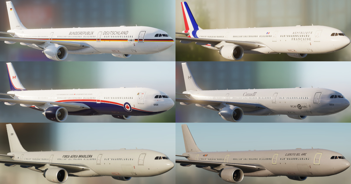 Skinpack of 18x passenger / charter airlines + 6x Air Force / Government for A330 in Civil Aircraft Mod.