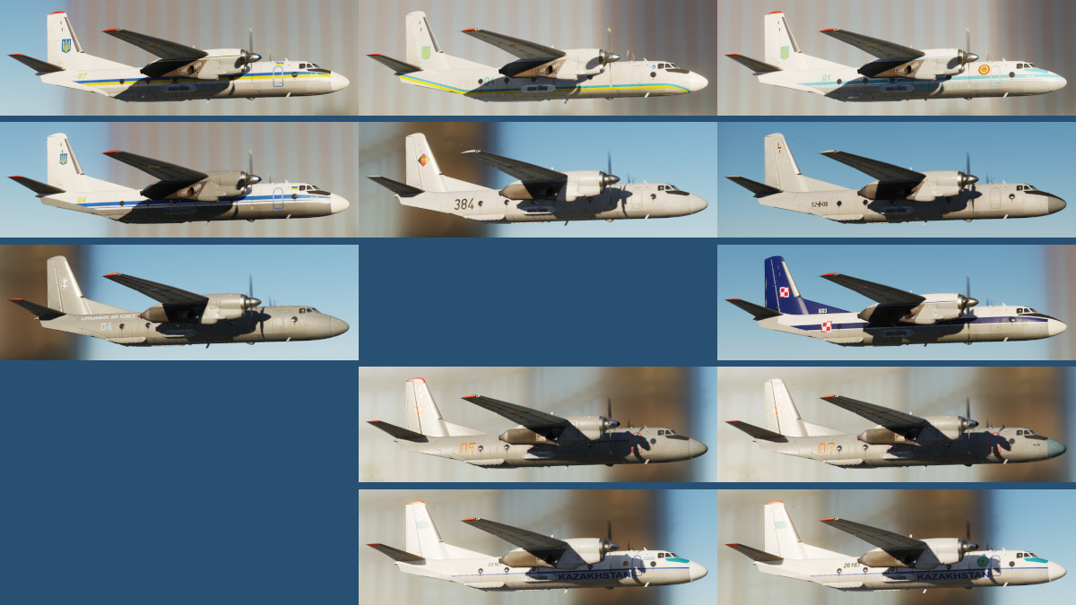 Historical skinpack of 12x Air Force / Armed Forces / Government + 14x commercial airlines = total 26 liveries for An-26B of Eagle Dynamics.