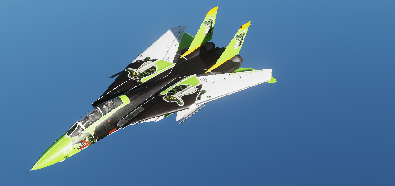 On A whim, I used AI-generated cartoon-style crocodile patterns (if there is any infringement, please contact us for deletion), and paired them with F-14 "A/B" livery made of black, white, green and orange