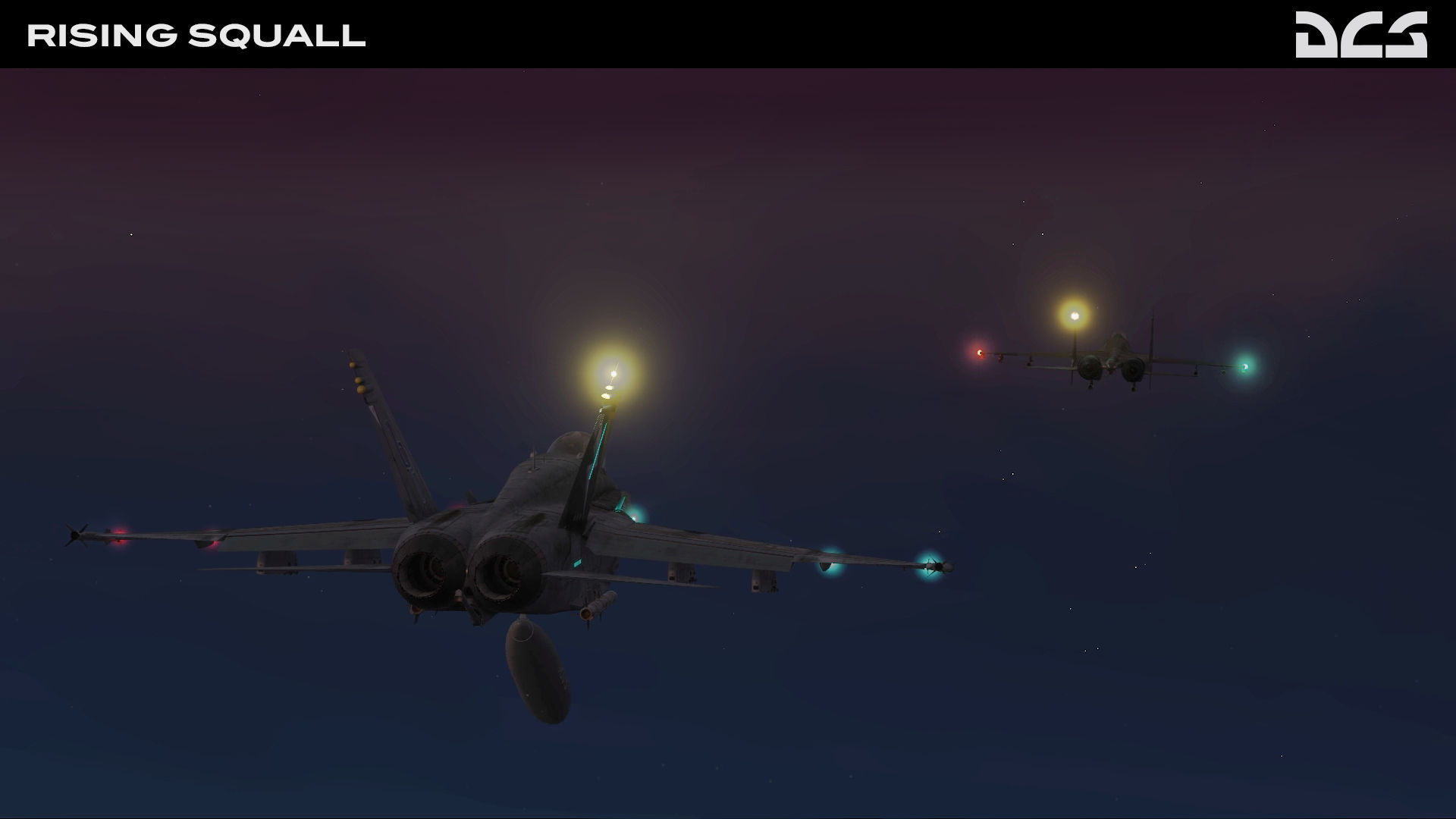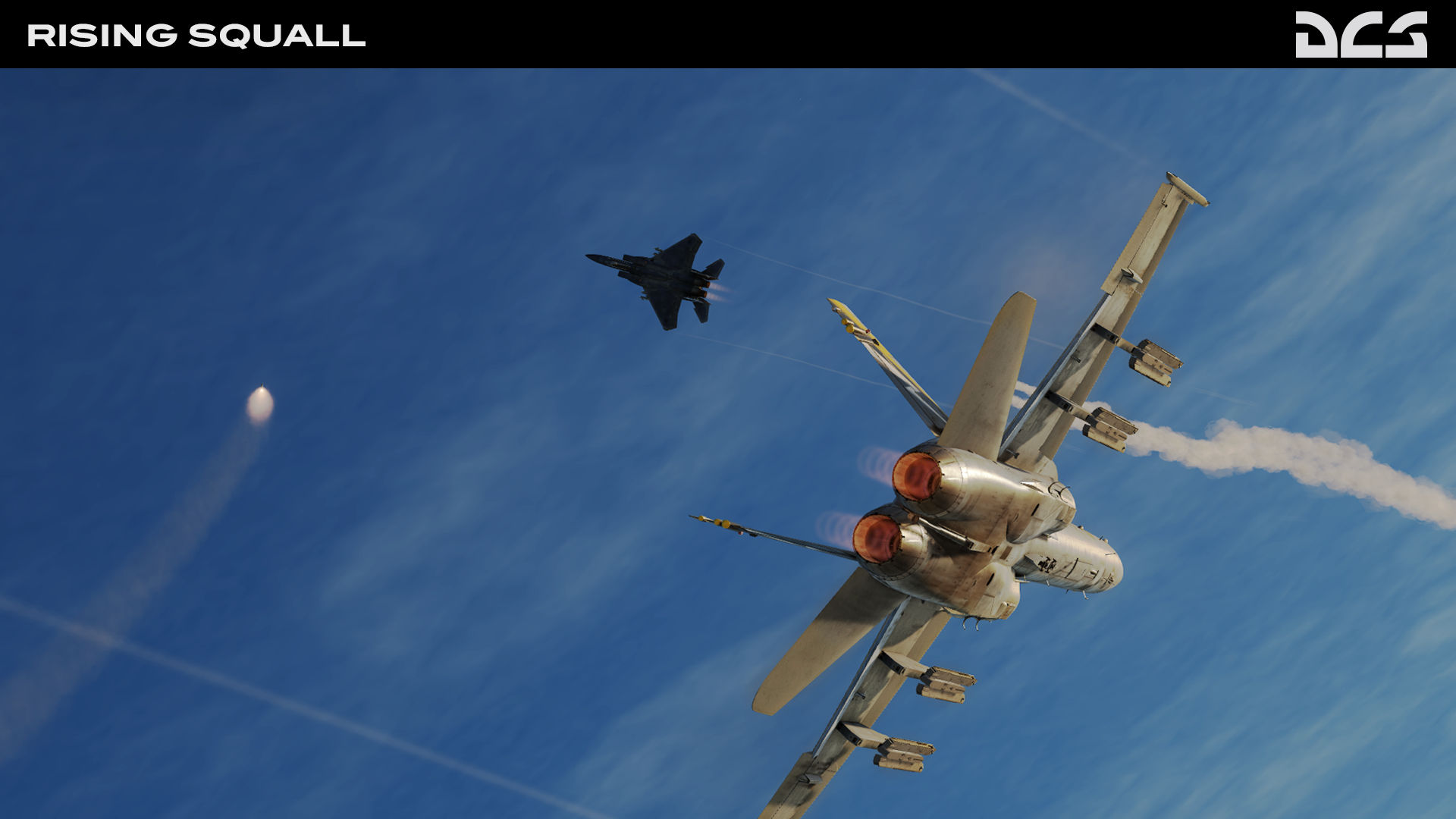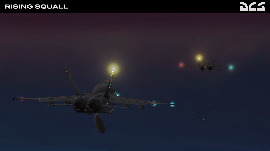 Rising Squall - кампания F/A-18C с весьма интригующей сюжетной линией. Стремясь к плавному возрастанию сложности задач для новичков, с постепенным усложнением миссий, в кампании уделено большое внимание атмосферности и накоплению опыта в игровом процессе, с профессиональным озвучиванием и музыкой.