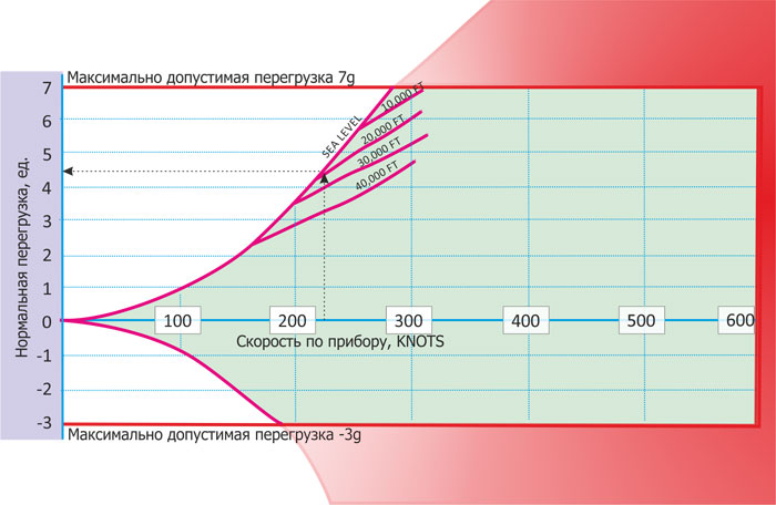 В связи с указанными особенностями поведения самолета приборная скорость на малых высотах ограничена значением 600 узлов.